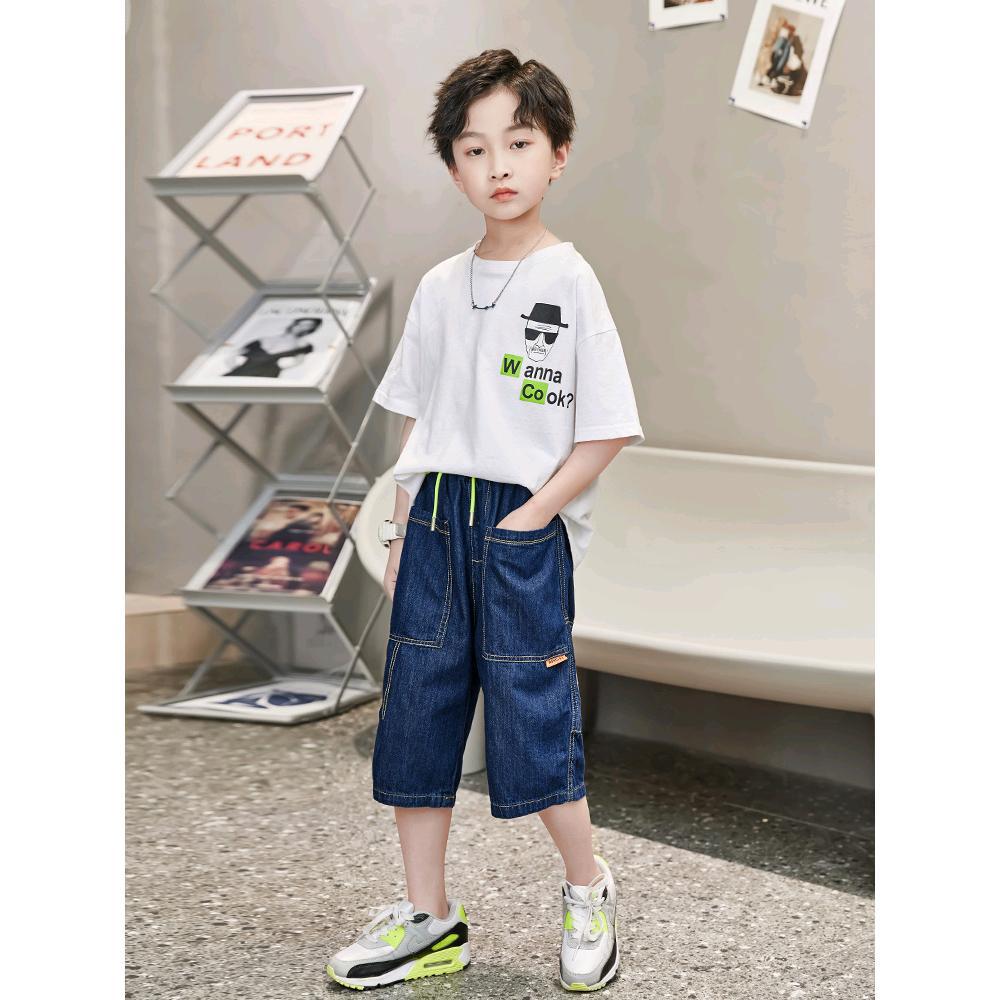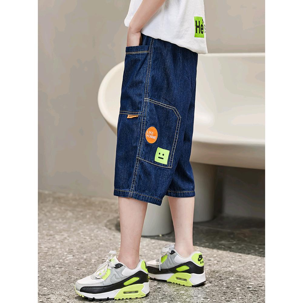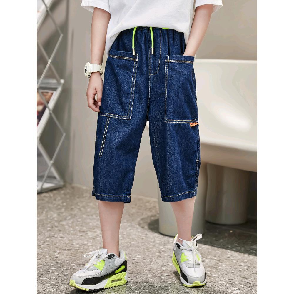 Boys' Pants Summer Thin 2024 New Style Large Children's Loose Shorts Children's Denim Pants Boys Capri Pants