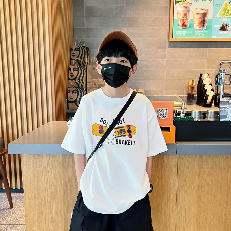 Boys’ pure cotton short-sleeved T-shirt in summer children’s clothing fashionable children’s printed half-sleeved loose top fashionable base shirt trendy