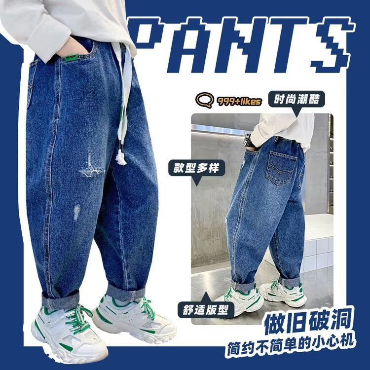 | nameOriginal | Boys Ripped Jeans 2024 New Arrival Zhongda Children's Trousers Spring Children's Pants Spring and Autumn Boys Casual Pants |