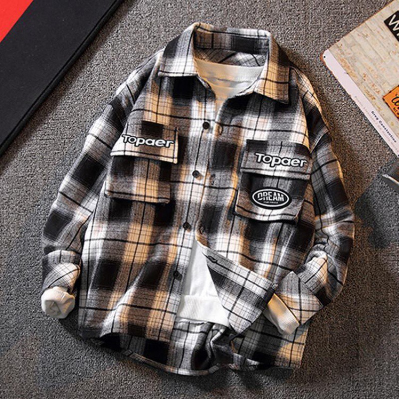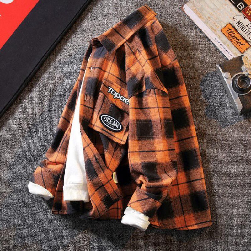 Boys’ Shirt Large Children’s Long Sleeve Top Boys’ Coat Spring and Autumn 95 Cotton 2024 New Plaid Shirt Trendy 1