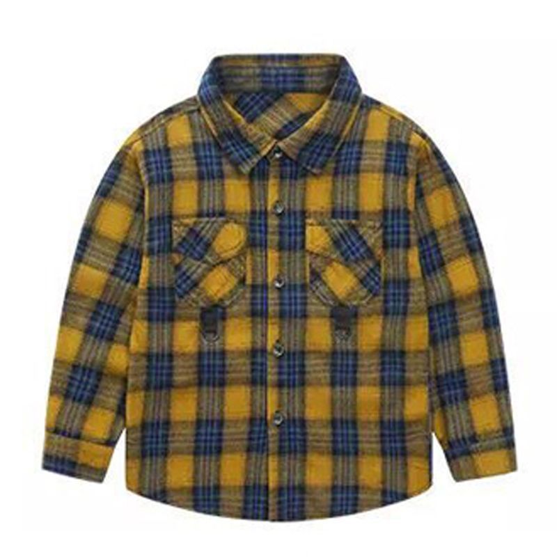 Boys' Shirt Large Children's Long Sleeve Top Boys' Coat Spring and Autumn 95 Cotton 2024 New Plaid Shirt Trendy 1