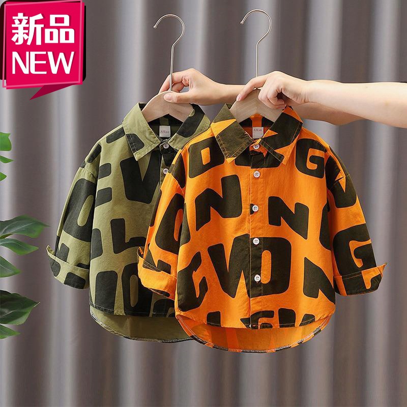 Boys' Shirt Long-sleeved Autumn 2024 New Arrival Small and Medium-sized Children's Spring and Autumn Stylish Korean Style Top Trendy Children's Wear Coat