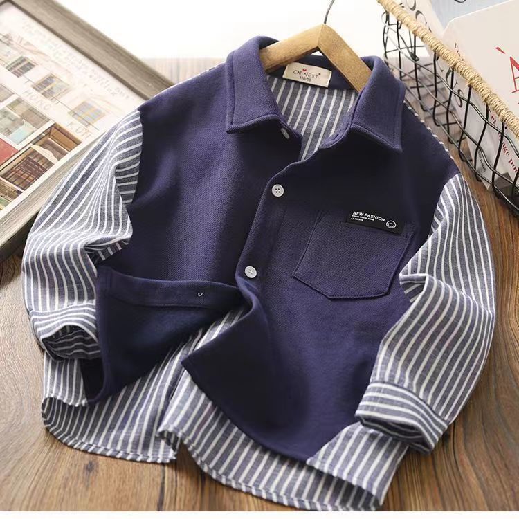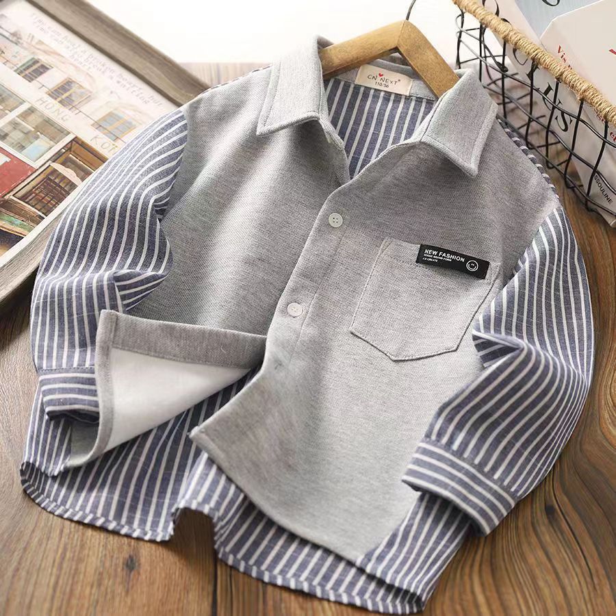 | nameOriginal | Boys Shirt Spring 2024 Autumn New Stitching Button Children's Lapel Fashion Fake Two-piece Shirt Stylish Top Trendy |