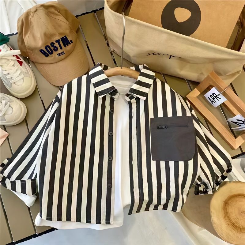 | nameOriginal | Boy's Shirt Spring and Summer Children's Hong Kong Style Shirt Small and Medium-sized Children's Vertical Stripe Baby Cool Handsome Loose Fashionable |