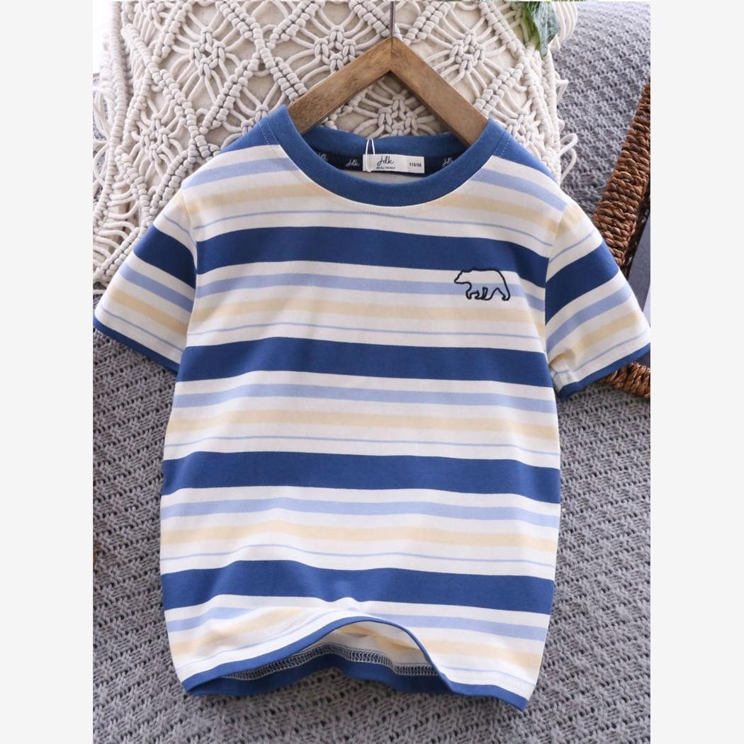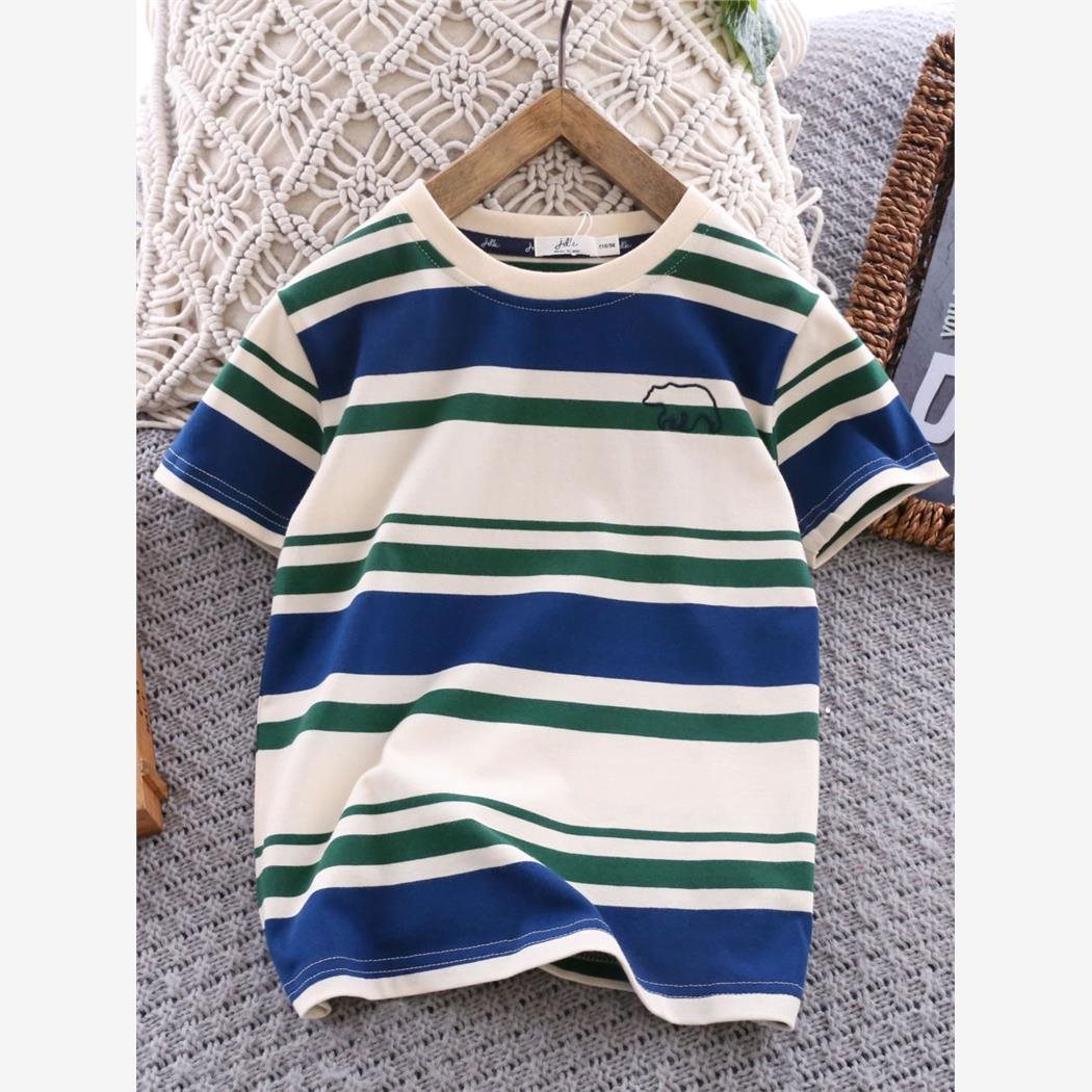 | nameOriginal | Boys' Short-sleeved Korean Style Children's 2024 New Summer Thin T-shirt Large Children's Striped Crewneck Top for Boys |