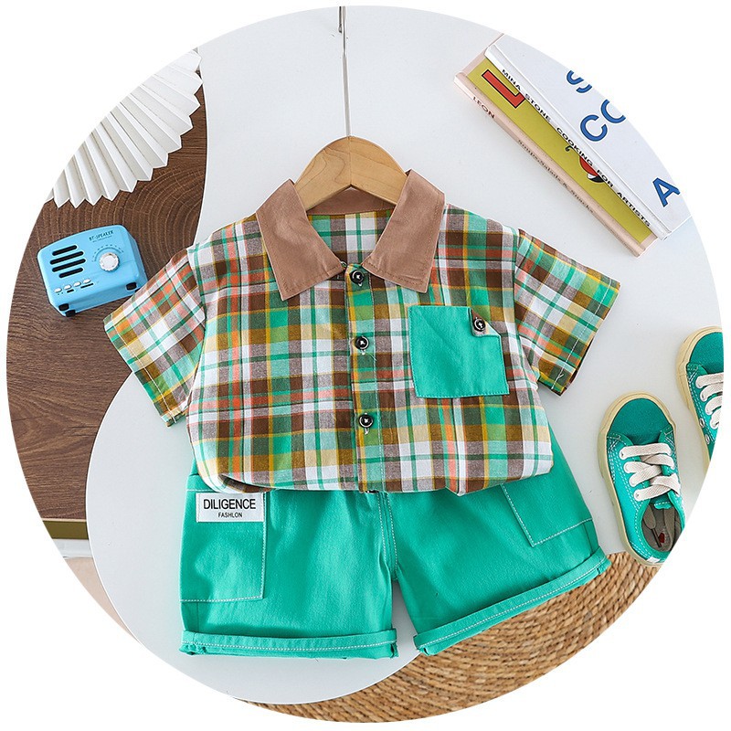 | nameOriginal | Boys' Short-sleeved Plaid Shirt Children's Suit Korean Style Children's Shirt Two-piece Cotton Summer New Foreign Trade Children's Clothing |