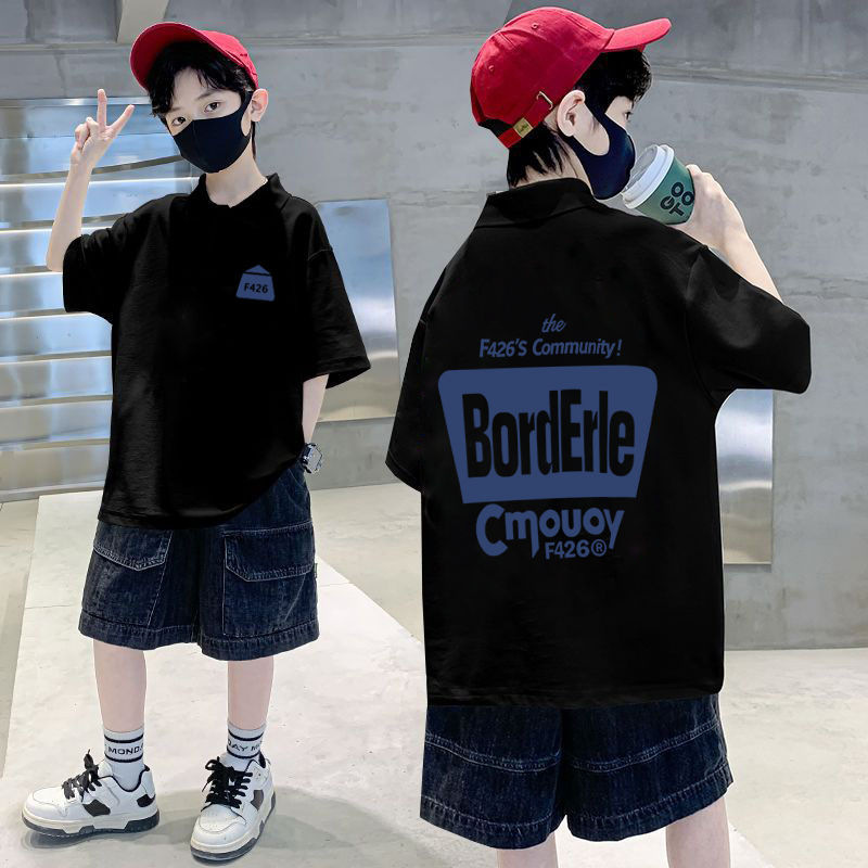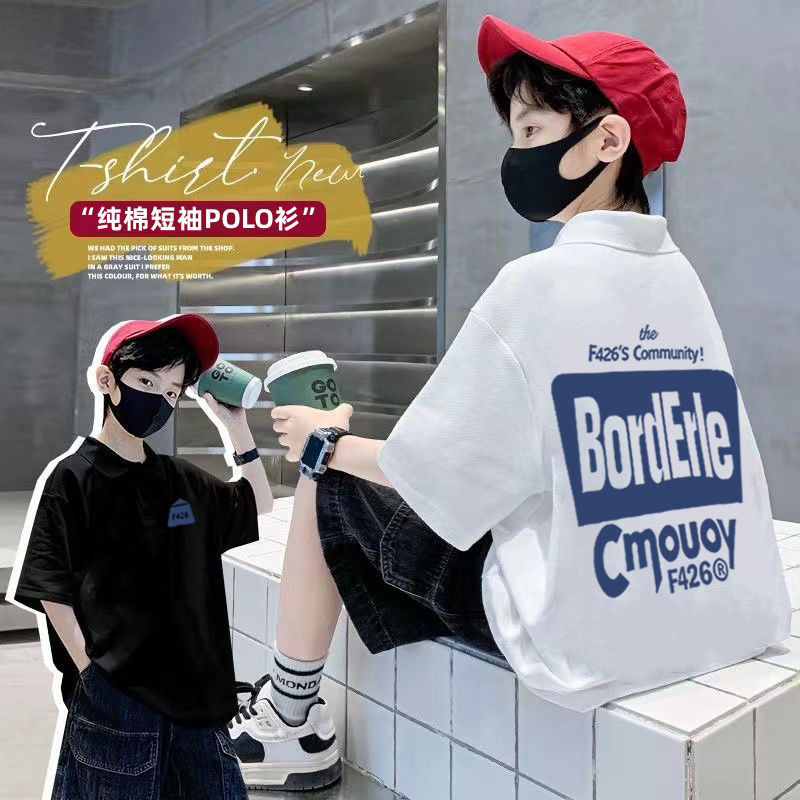 Boys’ short-sleeved POLO collar 2023 Summer new western style children’s half-sleeved T handsome boy cartoon fried street top