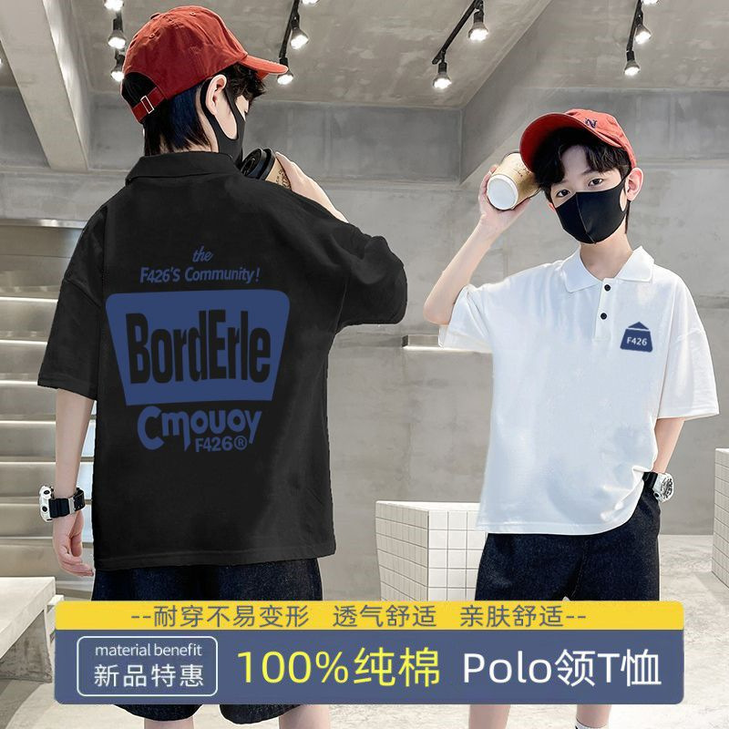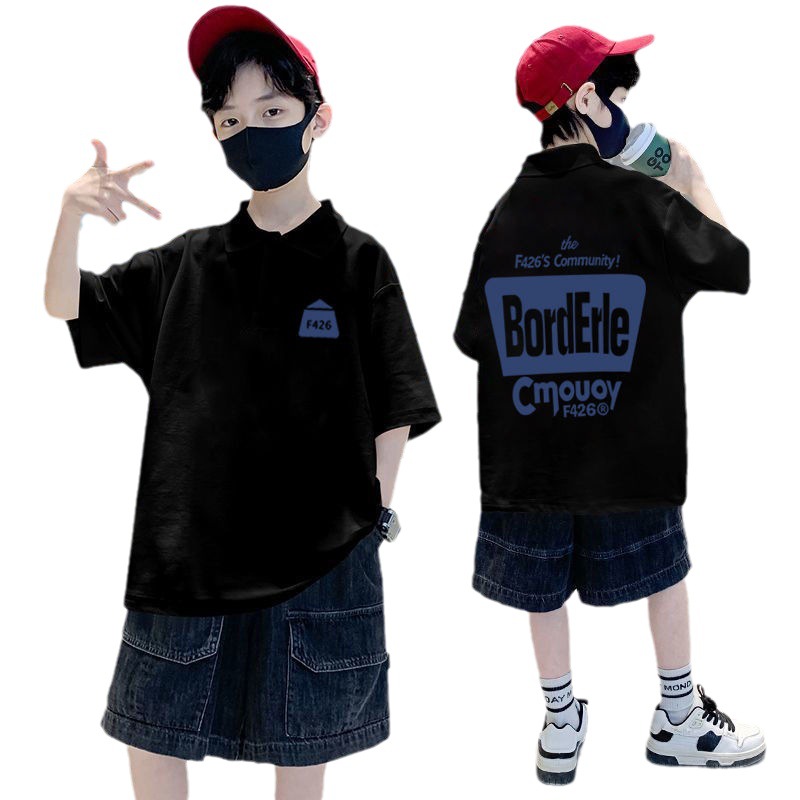Boys' short-sleeved POLO collar 2023 Summer new western style children's half-sleeved T handsome boy cartoon fried street top