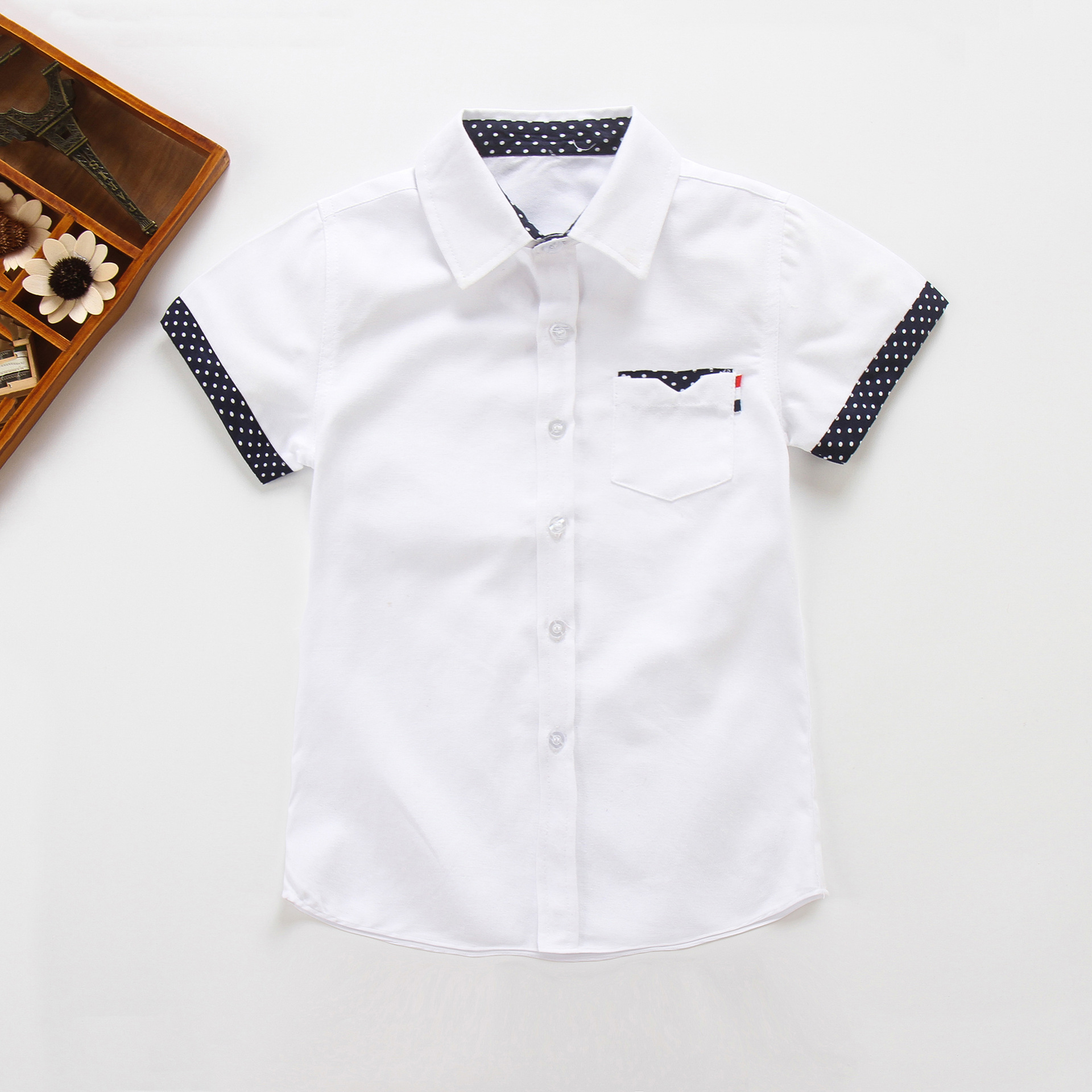 Boys’ short-sleeved shirt summer children’s 2024 New Korean style versatile children’s clothing medium and big children’s white top