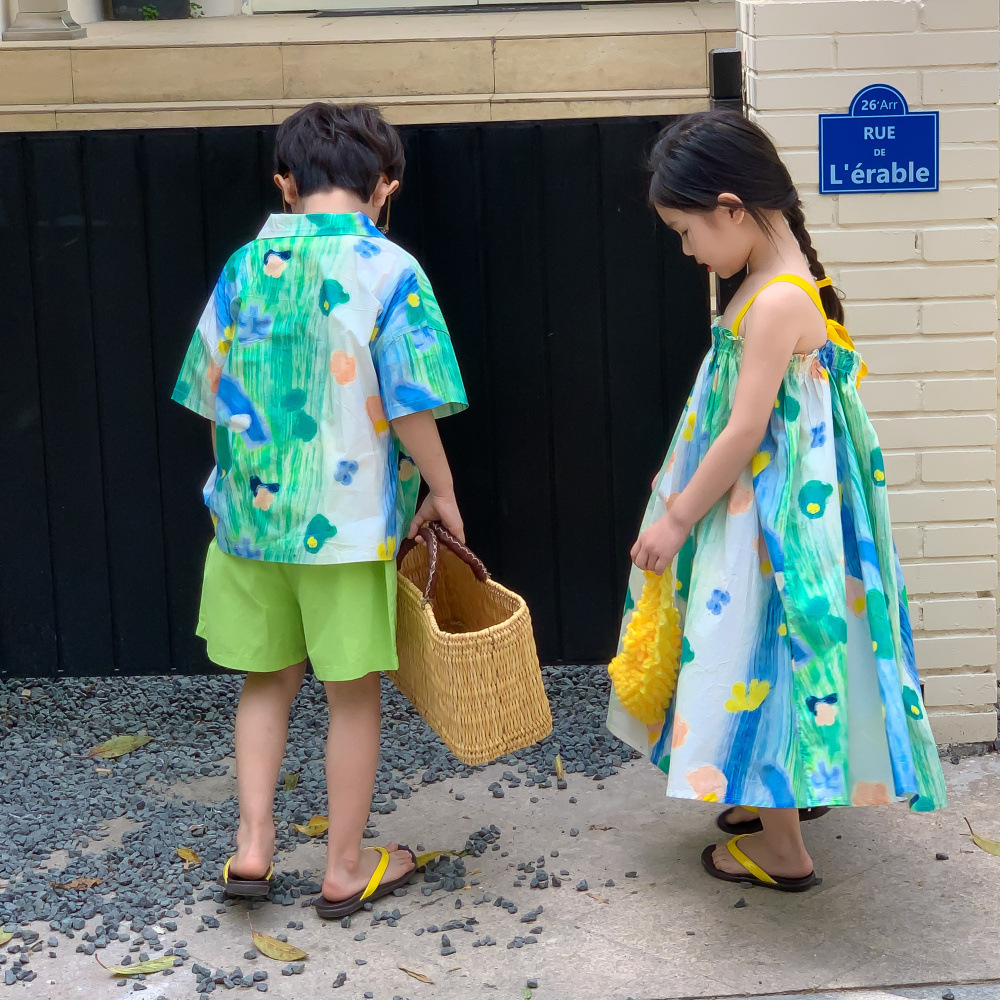| nameOriginal | Boys' Short-sleeved Shirt Summer Girls' Beach Sling Skirt Baby's Holiday Style Princess Skirt Brother and Sister's Fashion Dress |