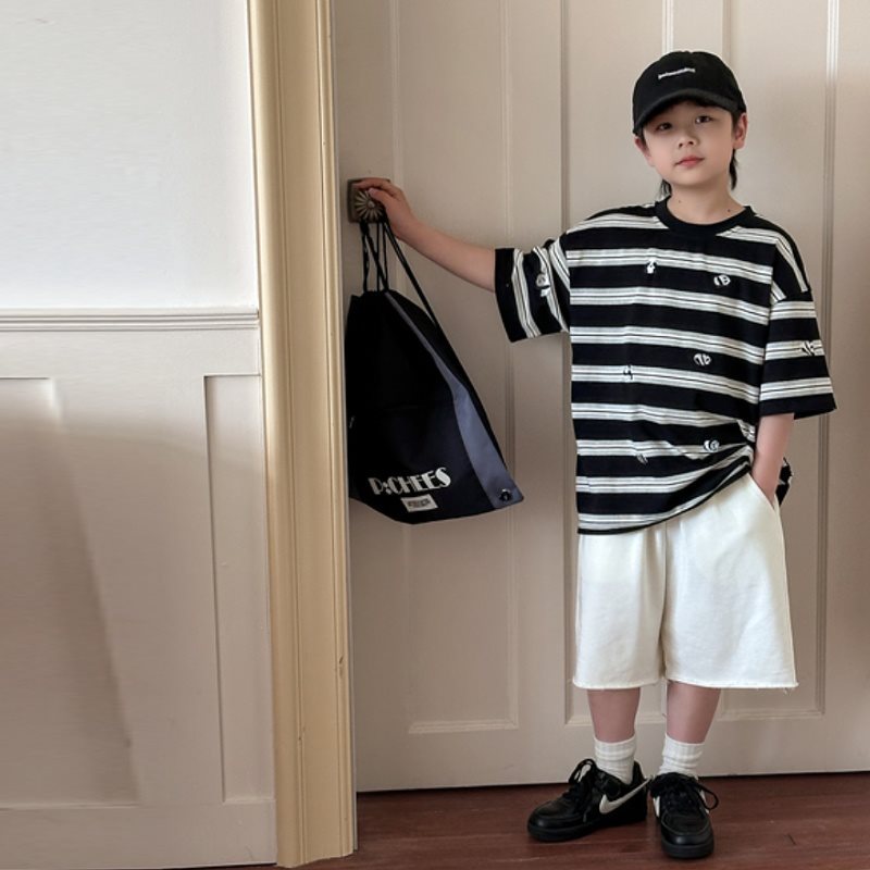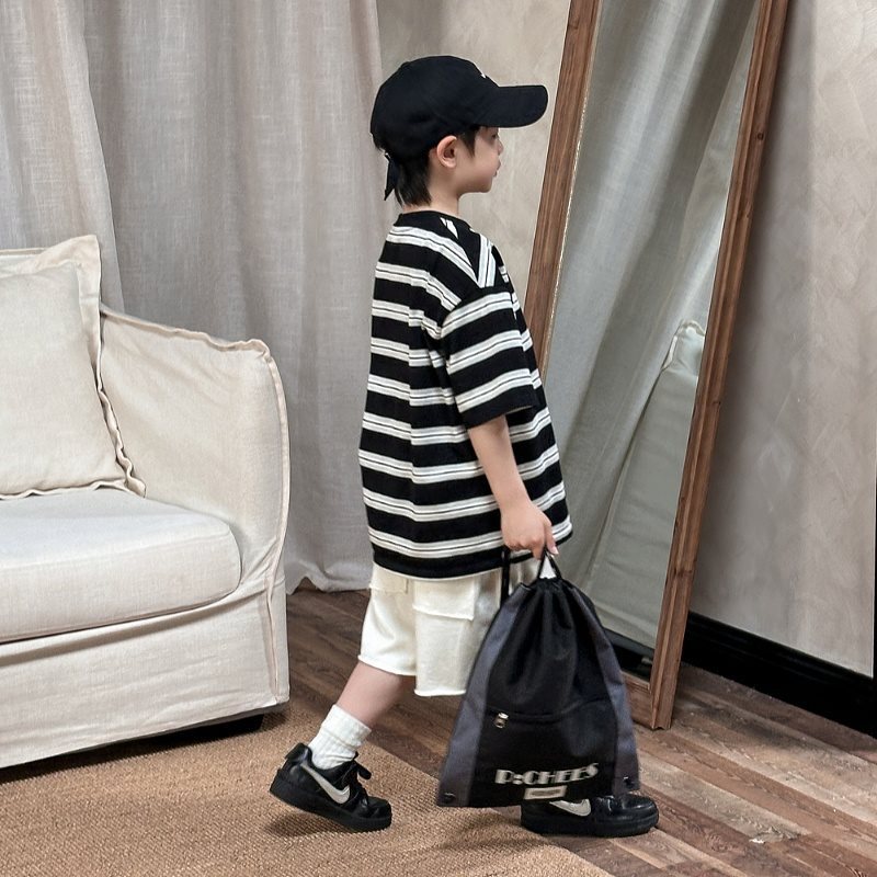 | nameOriginal | Boys' Short-sleeved T-shirt 2024 New Style Middle and Large Children's Striped Top Children's Summer Half-sleeved Summer Fashion |