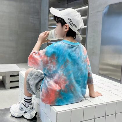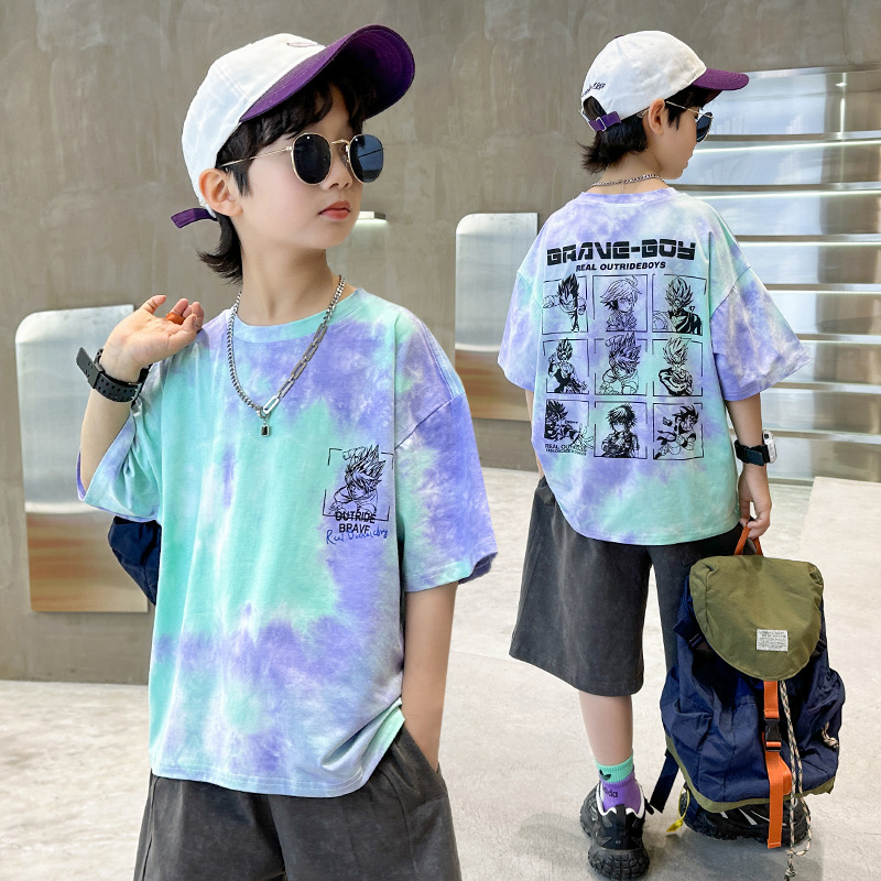| nameOriginal | Boys Short-sleeved T-shirt Big Children's Top Summer 2024 New Tie-dyed Full Printed Korean Version Cool Handsome Backing Shirt Class A |