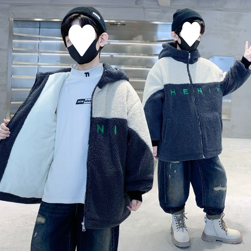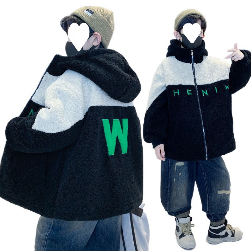 | nameOriginal | Boys' spring, autumn and winter coat for big children fleece-lined thickened cotton-padded coat Western style lamb wool windbreaker trendy boy 8-year-old 9 |
