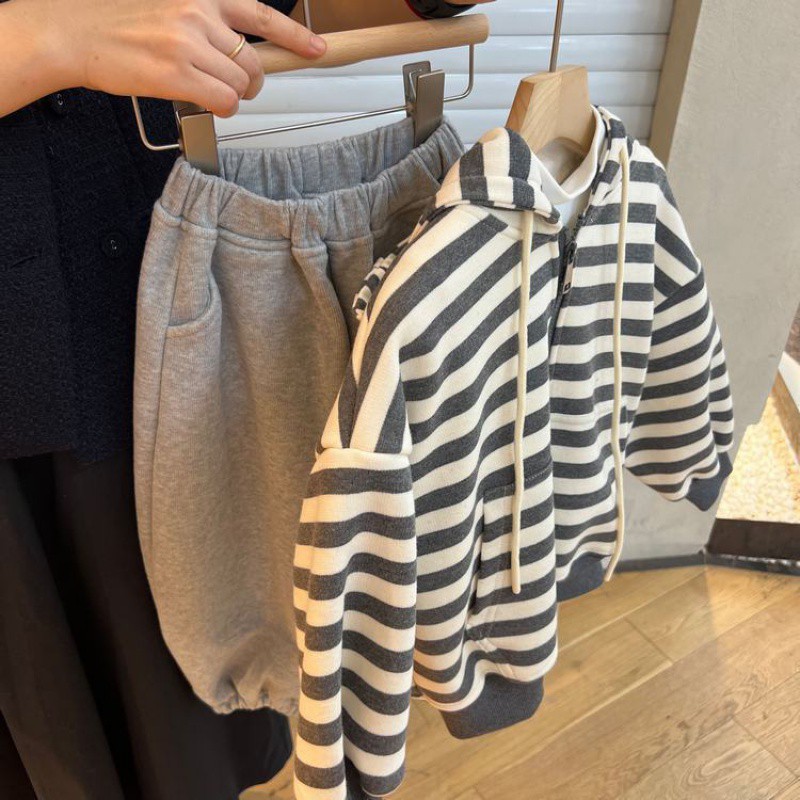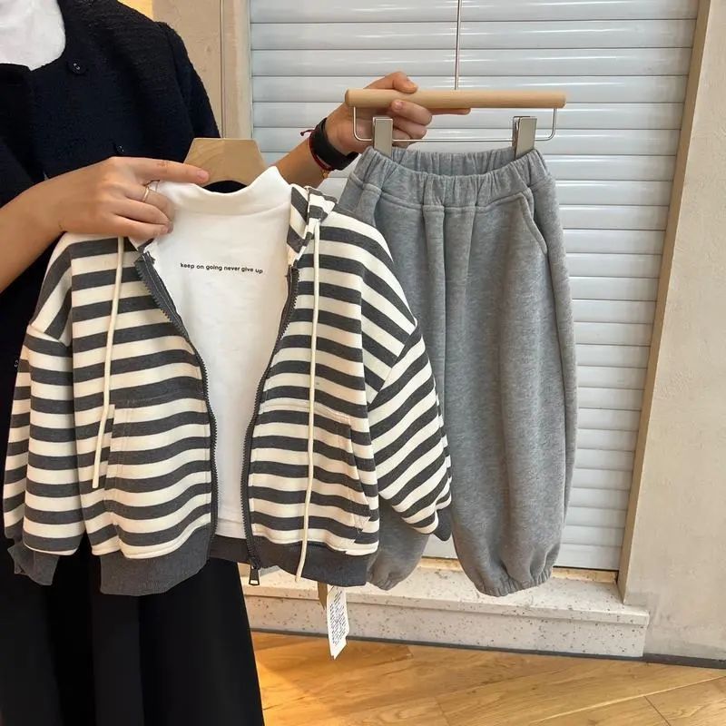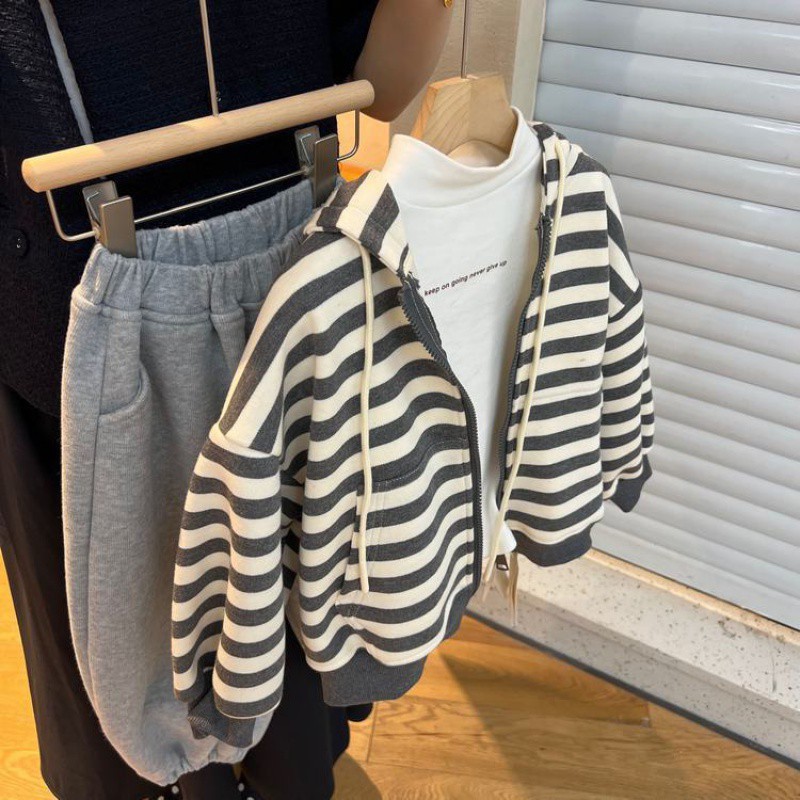 | nameOriginal | Boys' Spring Coat 2024 New Korean Style Foreign Style Children's Sweatshirt Spring and Autumn Hooded Girl's Striped Top Trendy |