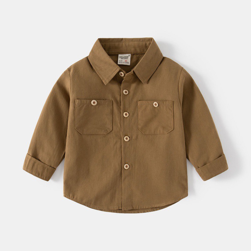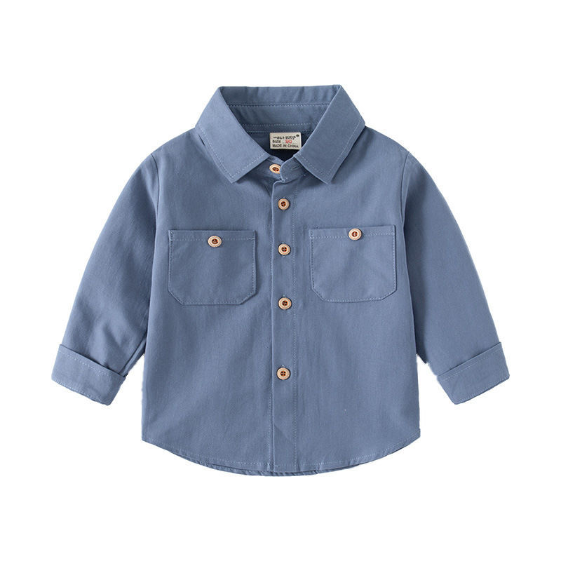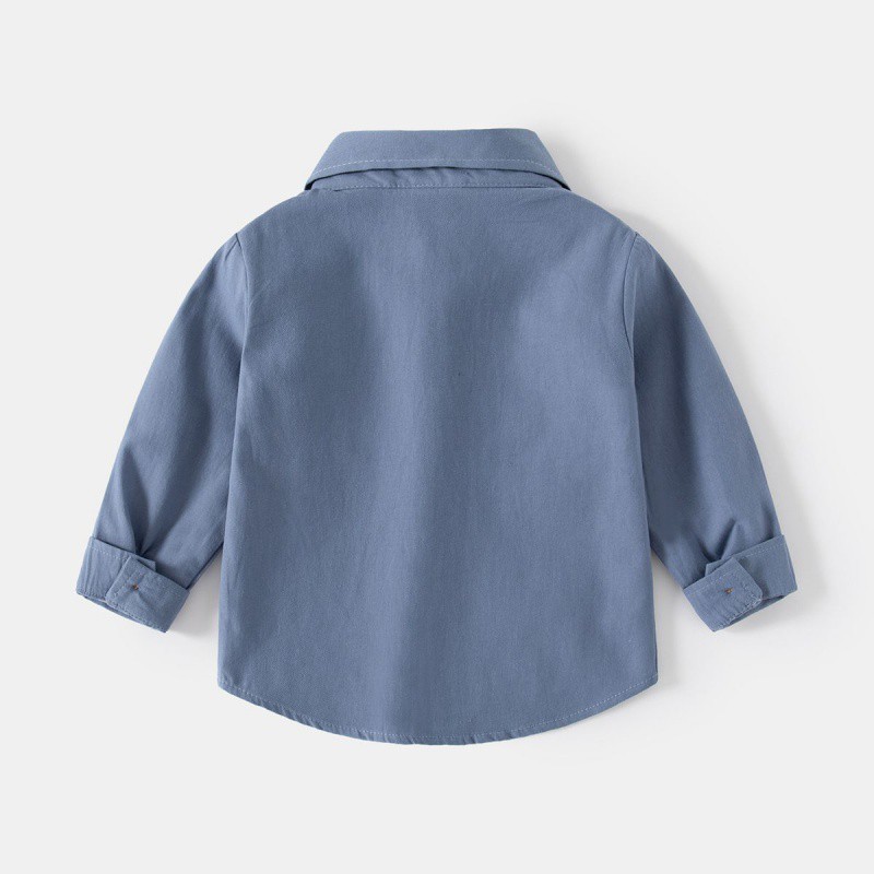 Boys’ Spring Lapel Shirt Spring and Autumn Korean Style Children’s Comfortable Fashion Baby Handsome Solid Color Long Sleeve Cotton Shirt Trendy