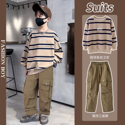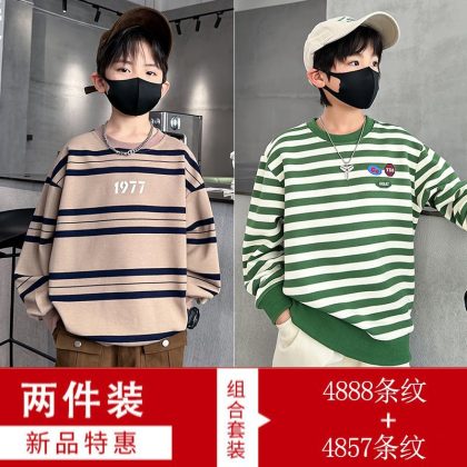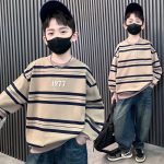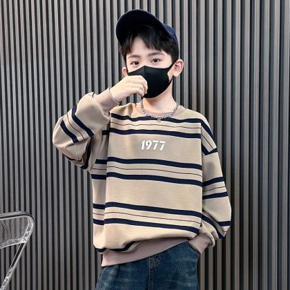 Boys’ Spring Striped Sweater 2024 New Children’s Spring and Autumn Top Fried Street Big Children’s Spring Ruffian Handsome Long-sleeved Trendy Brand