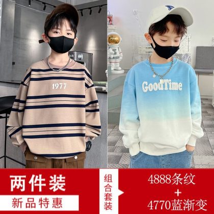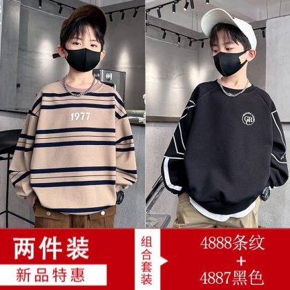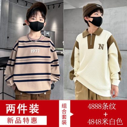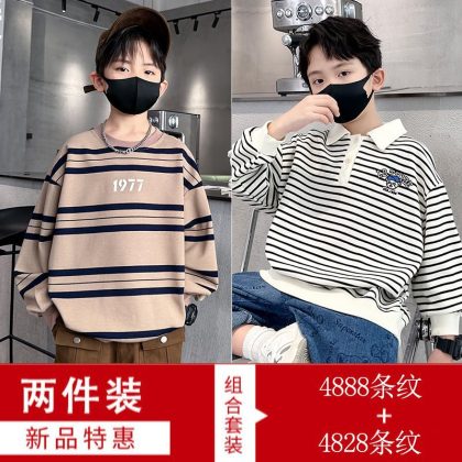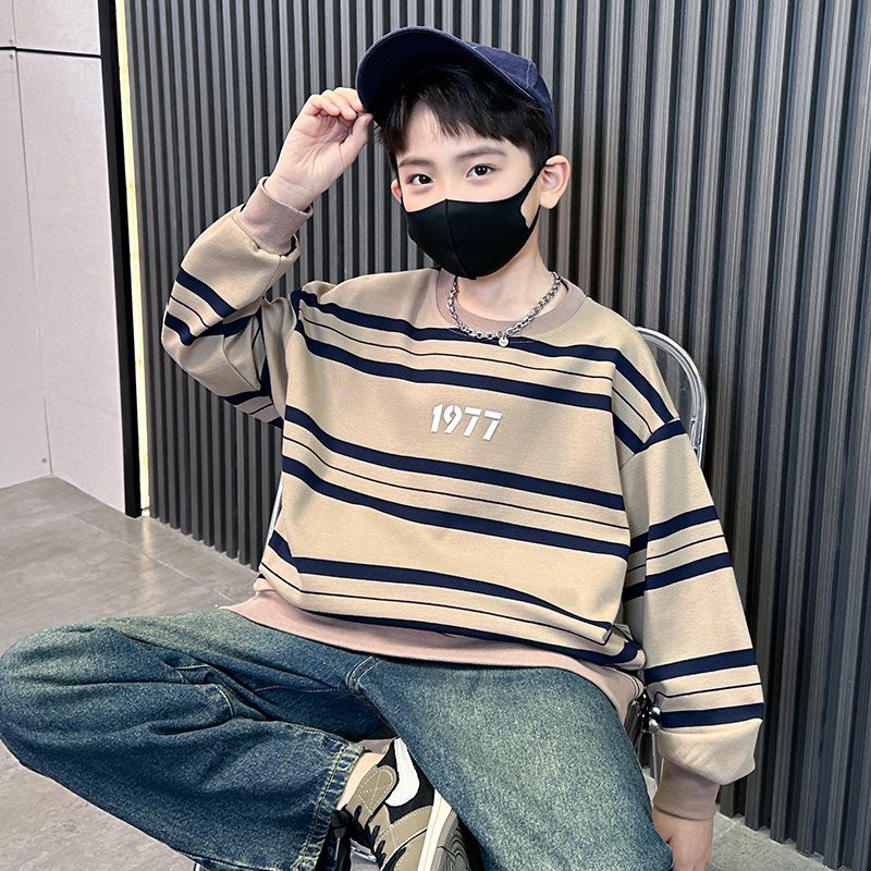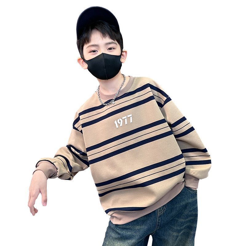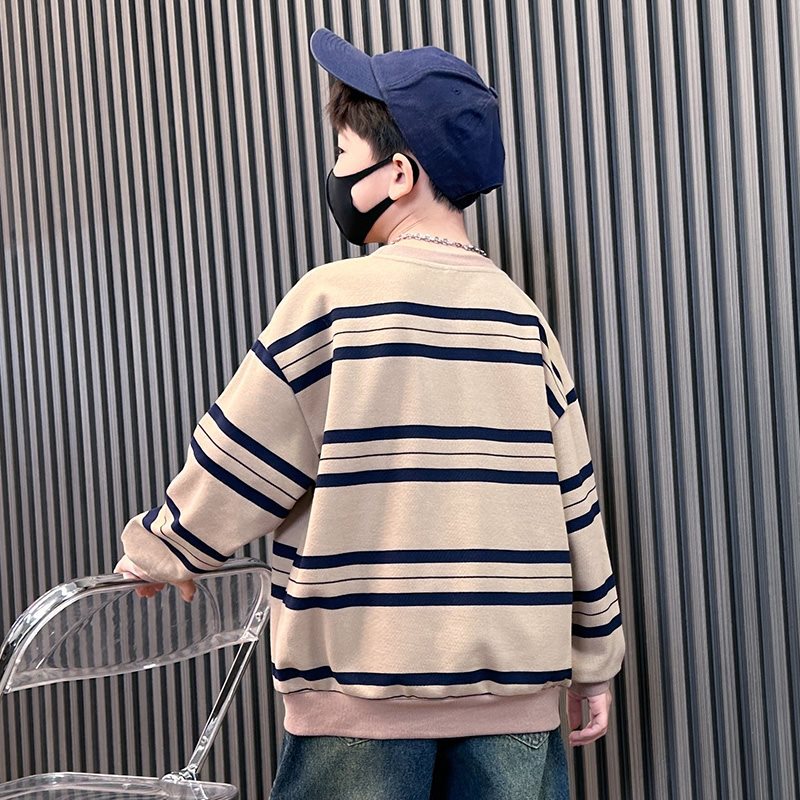 Boys' Spring Striped Sweater 2024 New Children's Spring and Autumn Top Fried Street Big Children's Spring Ruffian Handsome Long-sleeved Trendy Brand