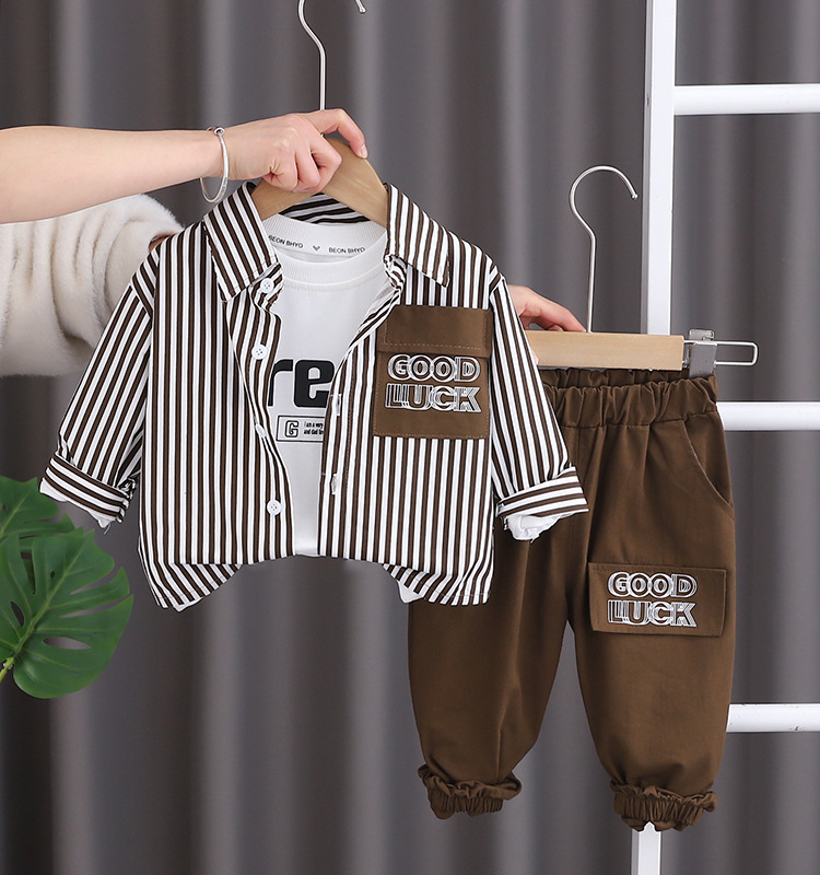Boys’ spring suit 2024 new Korean children’s spring and autumn ruffian handsome clothes men’s baby shirt three direct sales