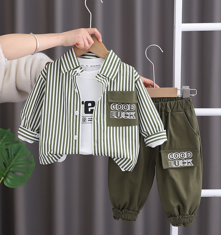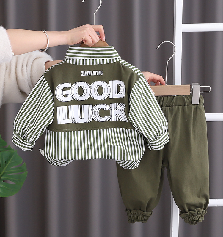 Boys' spring suit 2024 new Korean children's spring and autumn ruffian handsome clothes men's baby shirt three direct sales