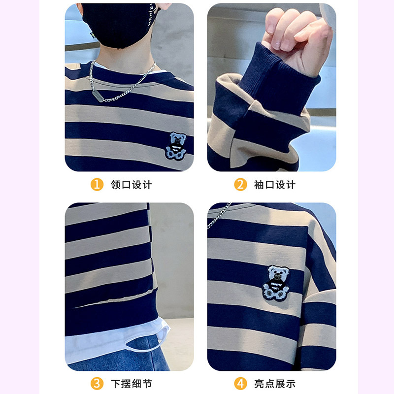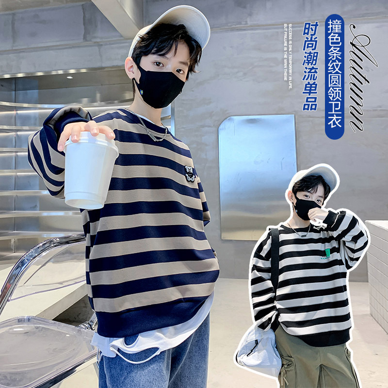 | nameOriginal | Boys' Striped Sweatshirt 2023 Spring and Autumn New Middle and Large Children's Crewneck Pullover Top Teenagers Children's Long Sleeve Top |