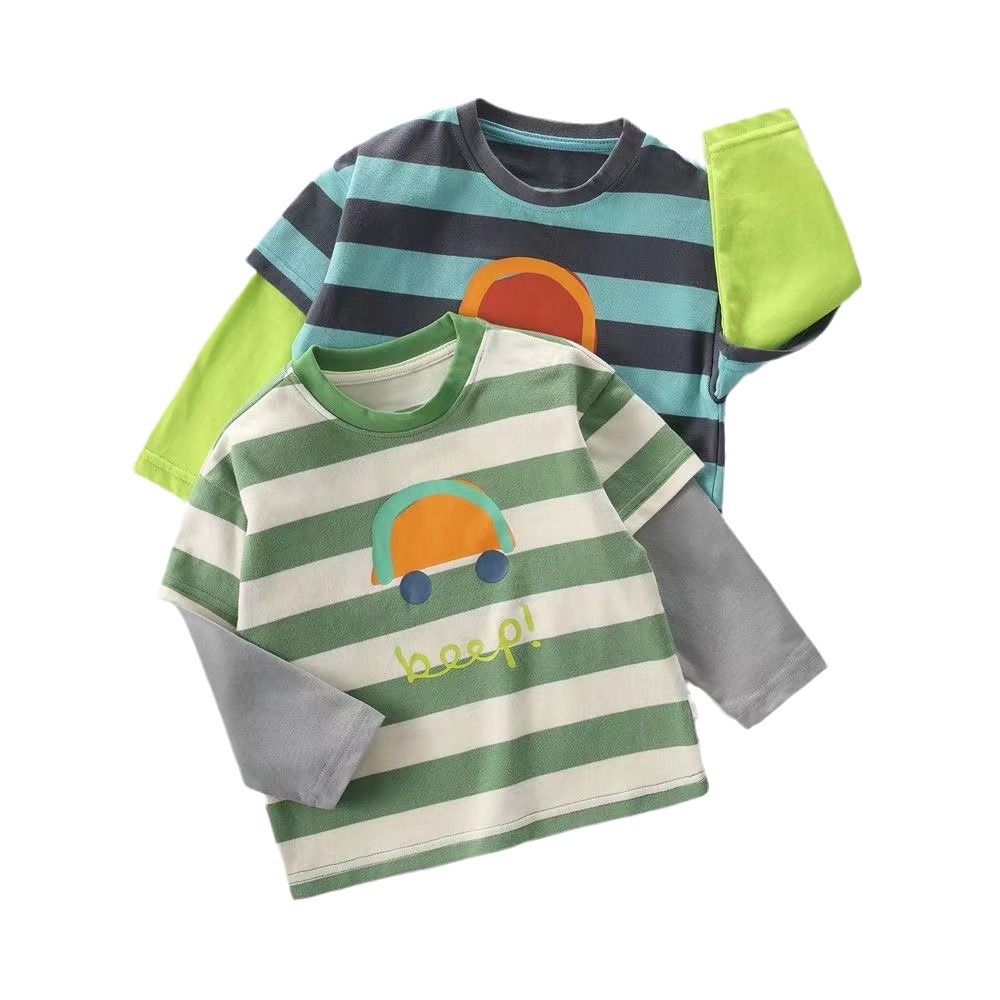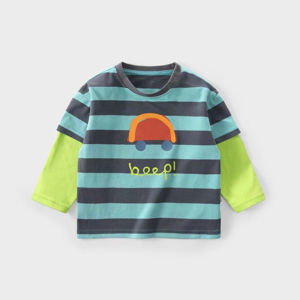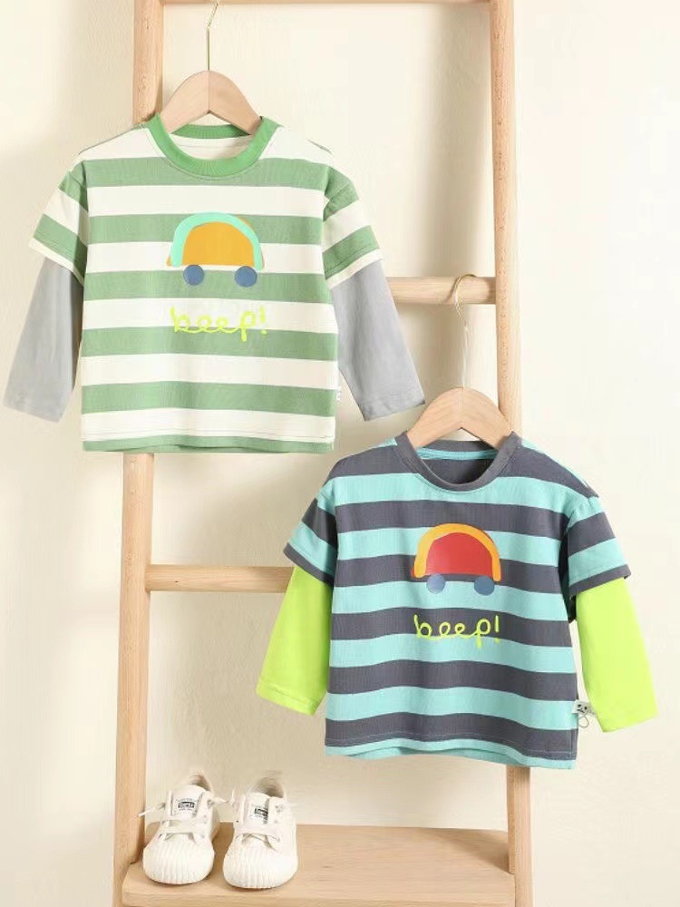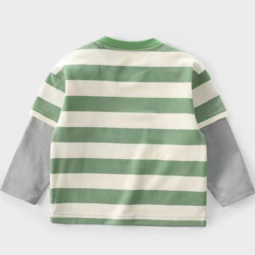 | nameOriginal | Boys' striped T-shirt 2023 Spring and Autumn New Baby round neck bottoming clothes children's fake two-piece top |