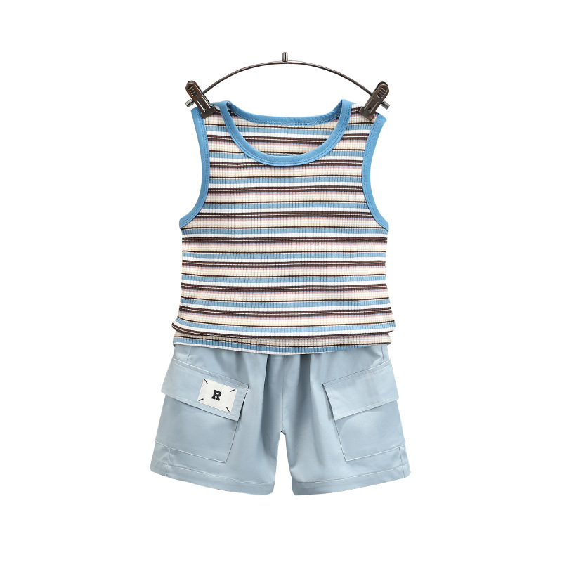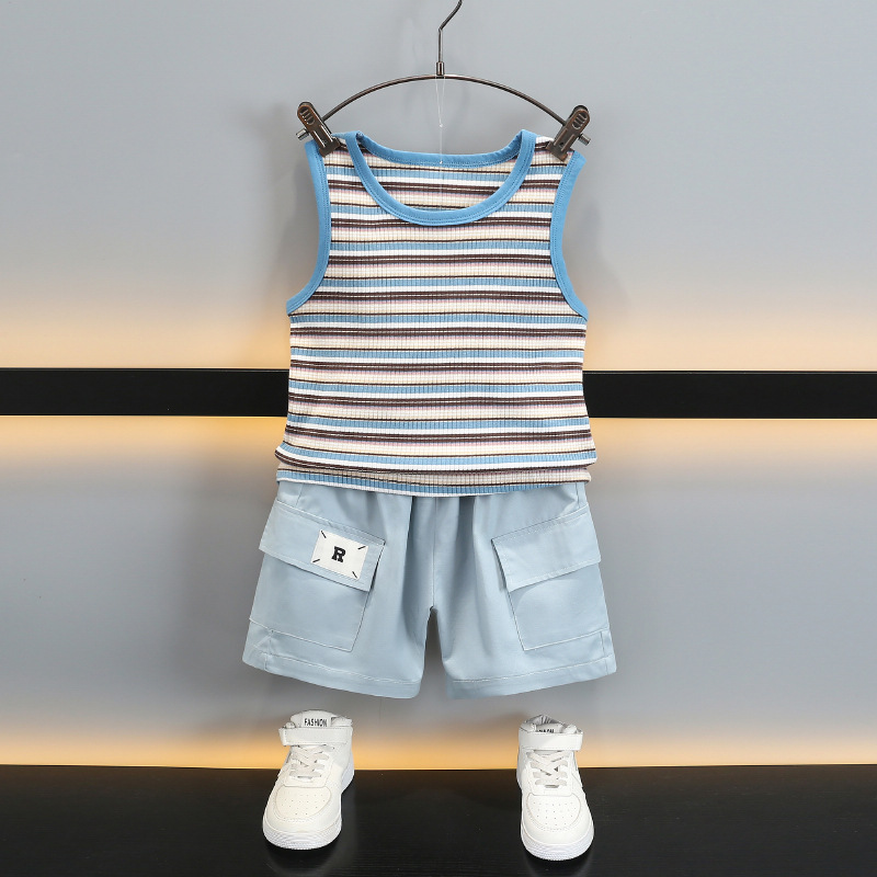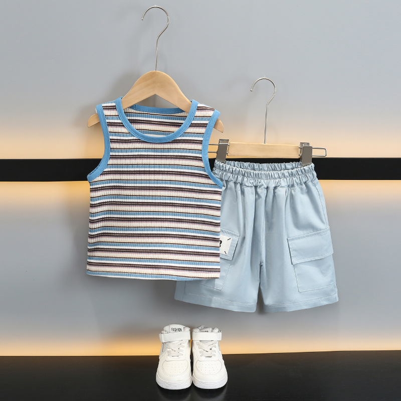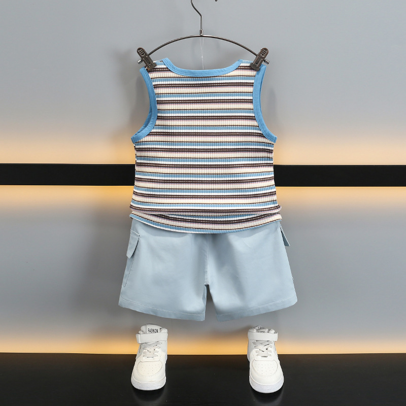 | nameOriginal | Boys Striped Vest suit Summer 2024 New Children's Western Style Fashionable Trend Men's Treasure Sleeveless Shorts Summer Wear |