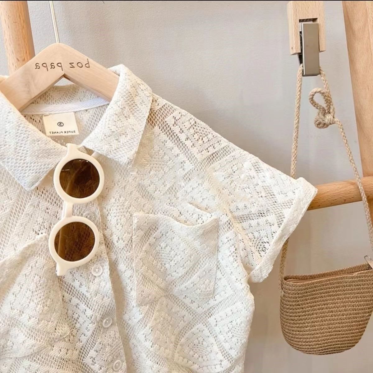 | nameOriginal | Boys' suit 2023 Summer New Children's Korean-style Hollow Short-sleeved Shirt Baby Fashion Loose Two-piece Set |