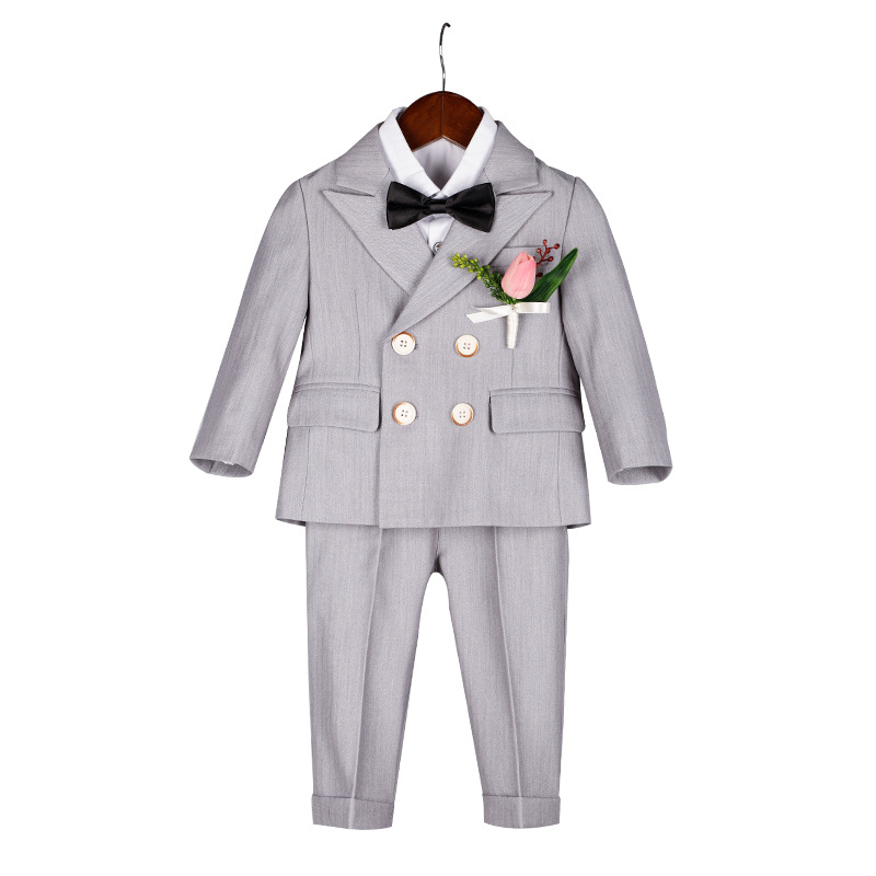 Boys’ Suit Baby’s Birthday Celebration Dress Boy’s Korean-style Double-breasted Wedding Flower Girl’s Suit