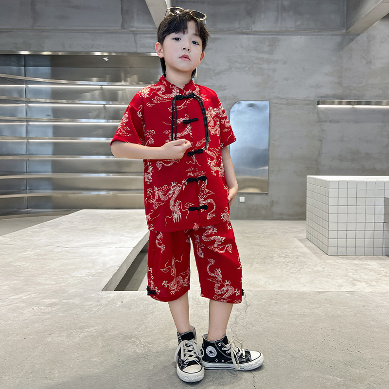 | nameOriginal | Boys' Suit Summer Thin Short-sleeved 2024 New Chinese Style Dragon Totem Tang Suit Hanfu Children's Performance Costume |