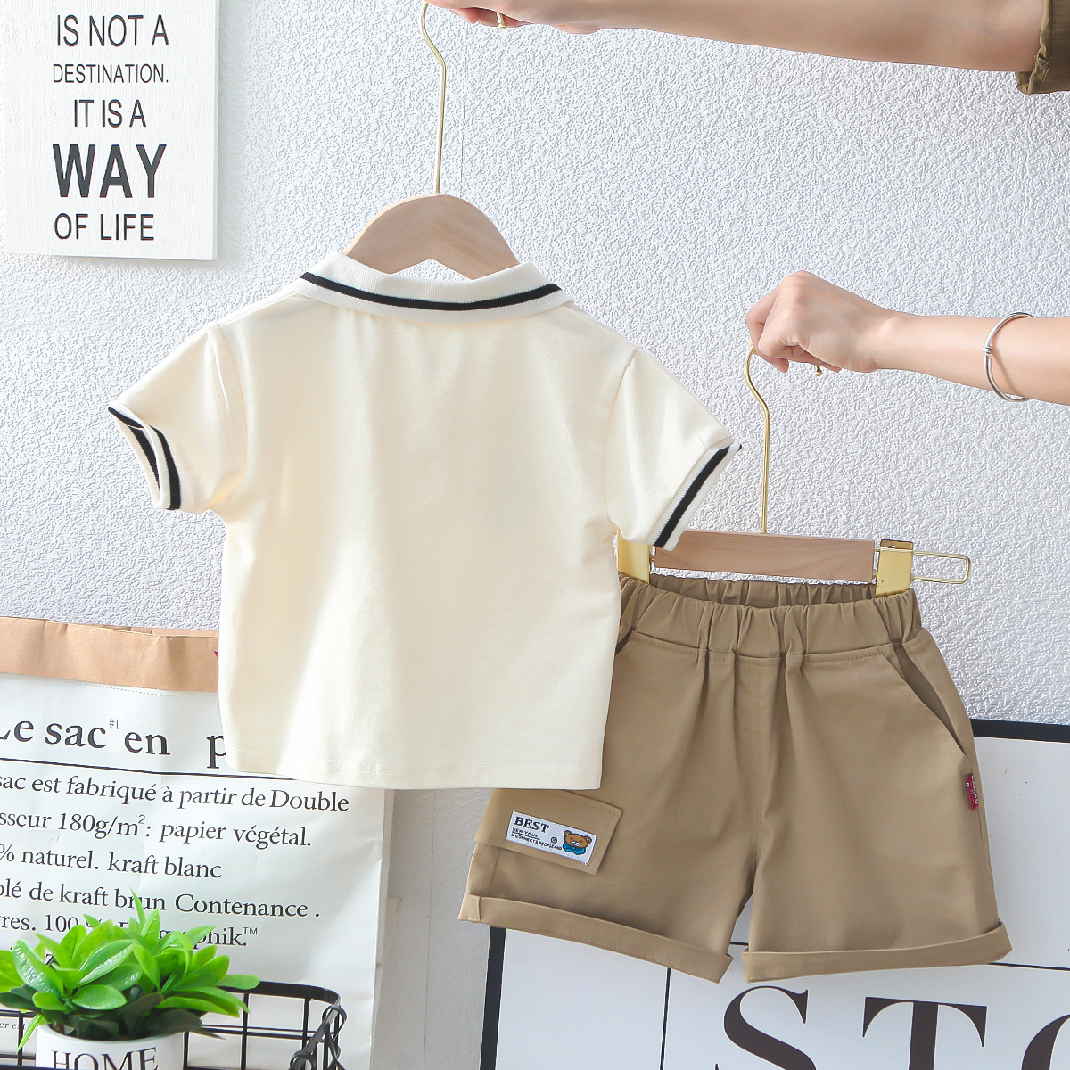| nameOriginal | Boys' suit summer Western style 2023 new children's clothes brown bear Polo collar short sleeve two-piece set a generation of hair |