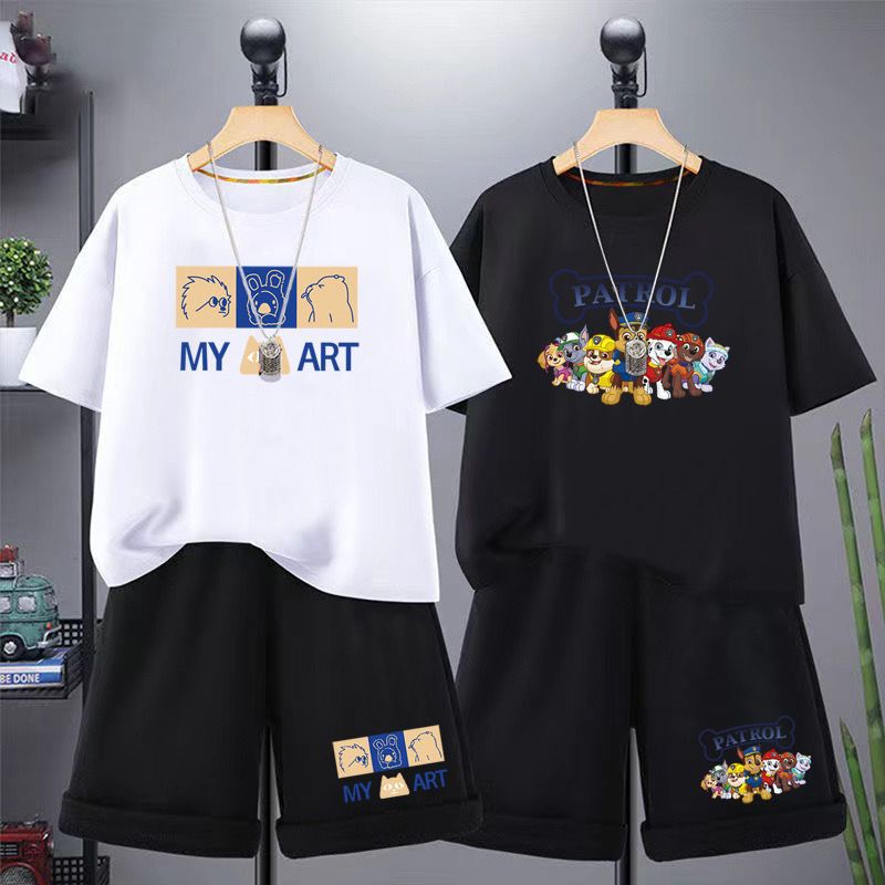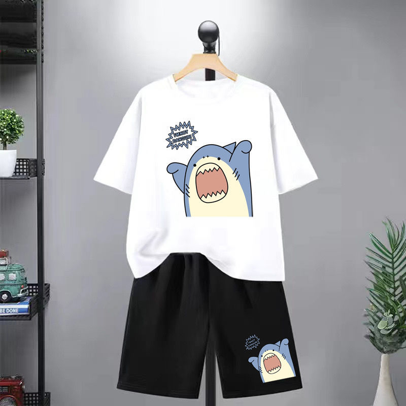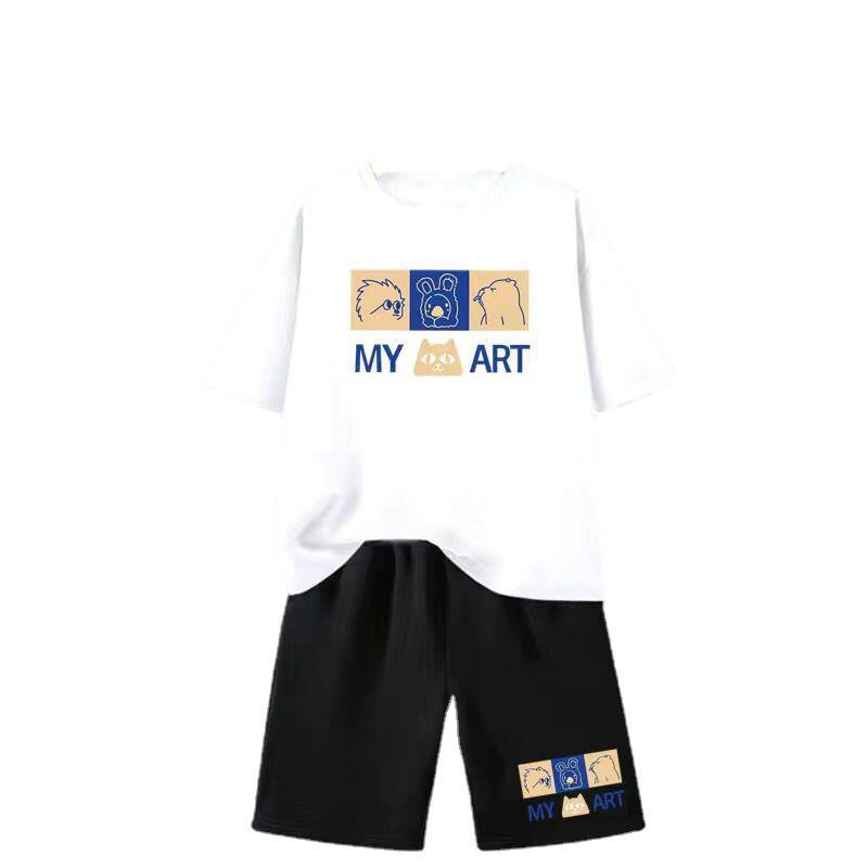 Boys Summer Clothes suit 2024 New Fashion Children's Summer Clothes Boys Korean Handsome Short-sleeved Shorts Two-piece Set