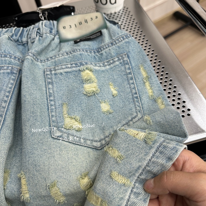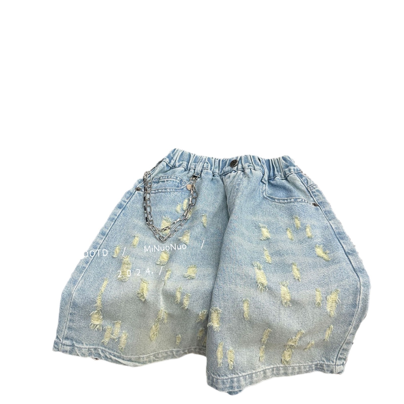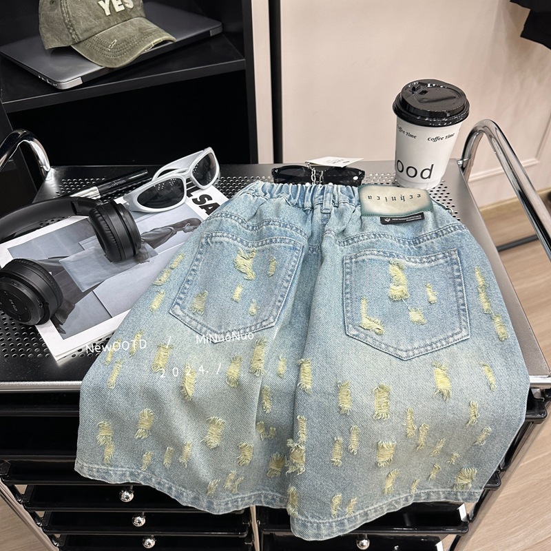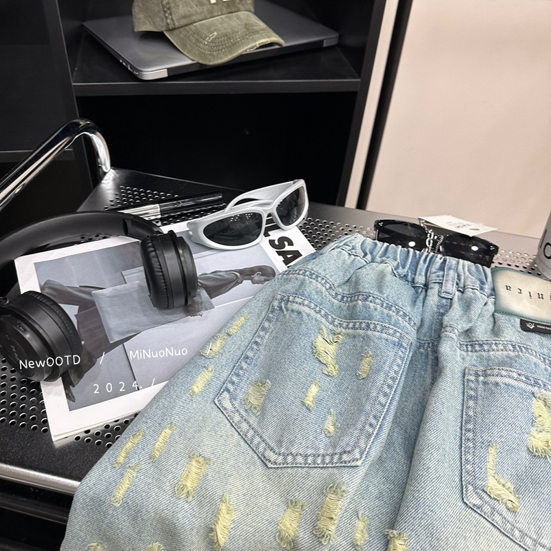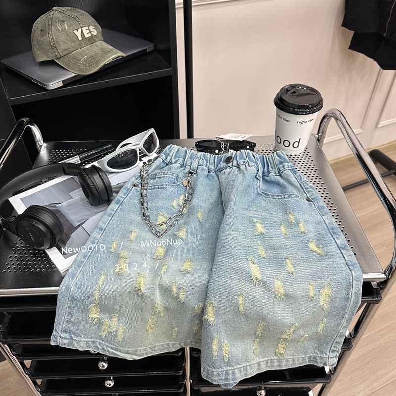 Boys' Summer Denim Shorts 2024 New Arrival Western Style Children's Wear Korean Ragged Mid-Pants Baby's Summer Pants