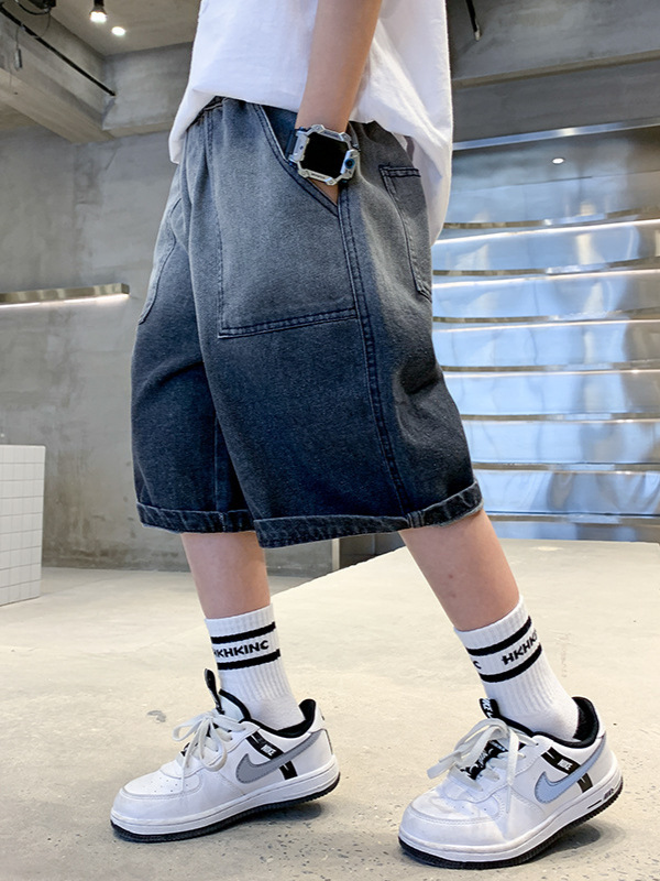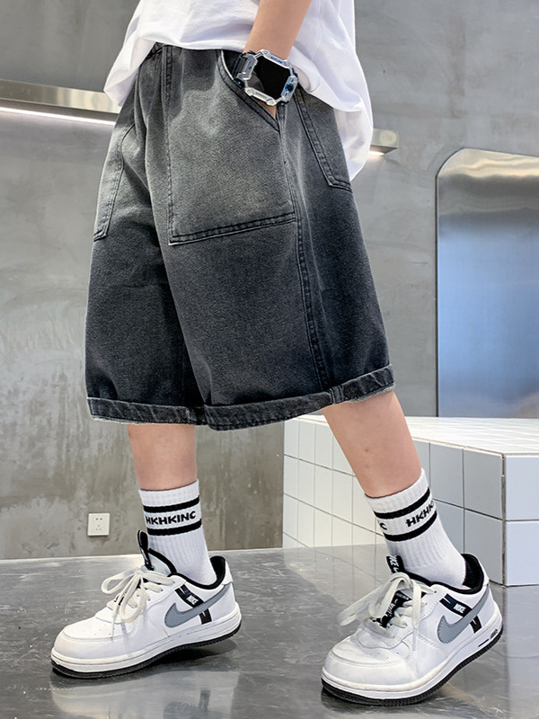 Boys' Summer Denim Shorts 2024 New Children's Personalized Gradient Five-point Pants Mid-size Children's Summer Clothes Trendy