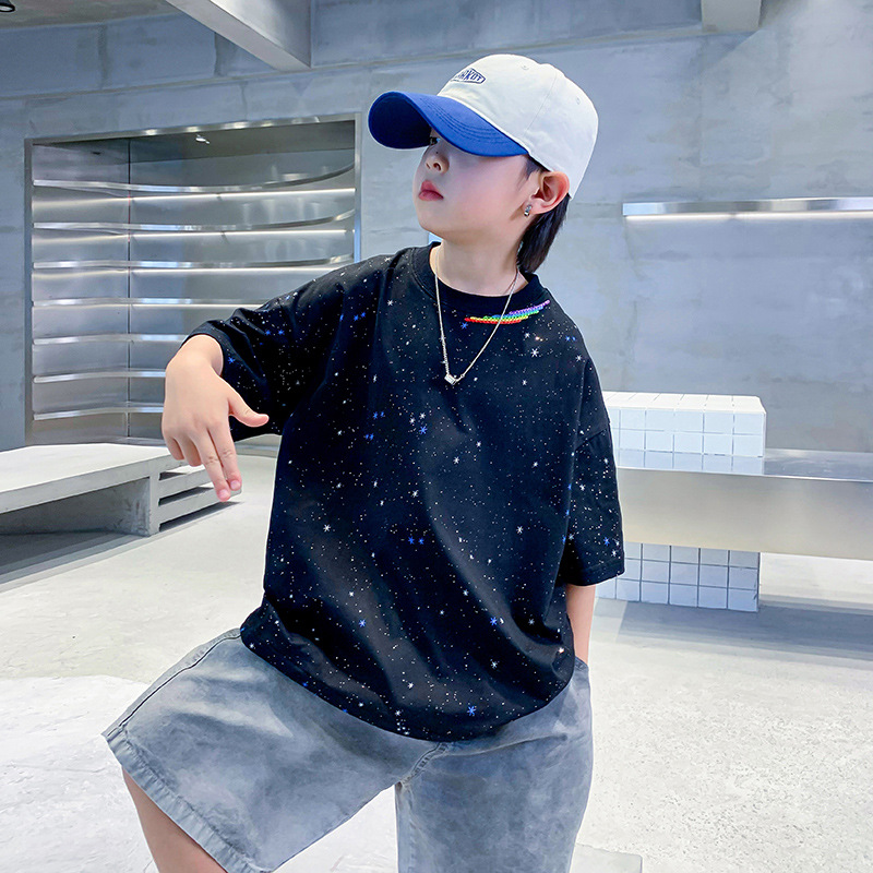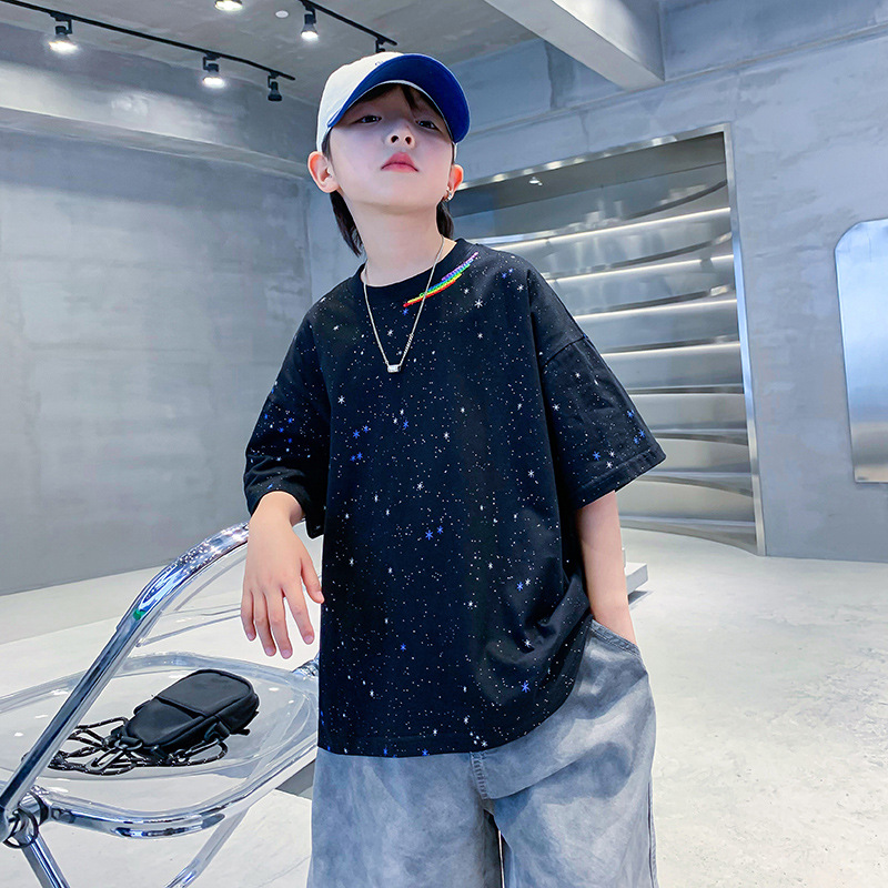 | nameOriginal | Boys Summer Dress Starry Sky Splash Ink Short Sleeve Cotton T-shirt 2024 New Children Boys Summer Ripper Handsome Half Sleeve Top |