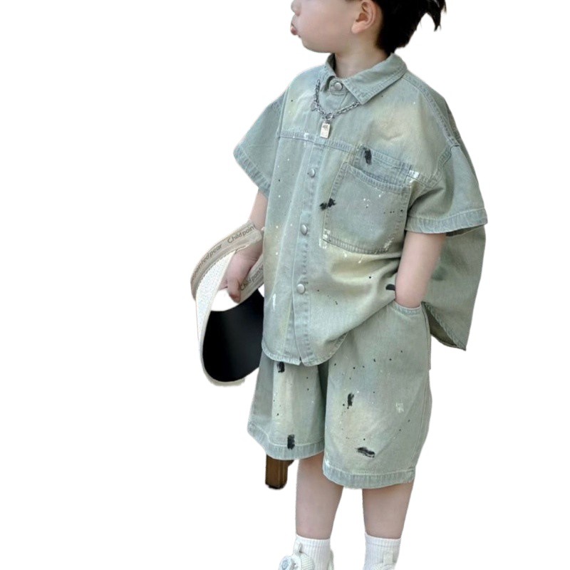 Boys Summer Dress suit 2024 New Handsome Boys Summer Thin Western Style Children's Shirt Two-Piece Short-Sleeved Set