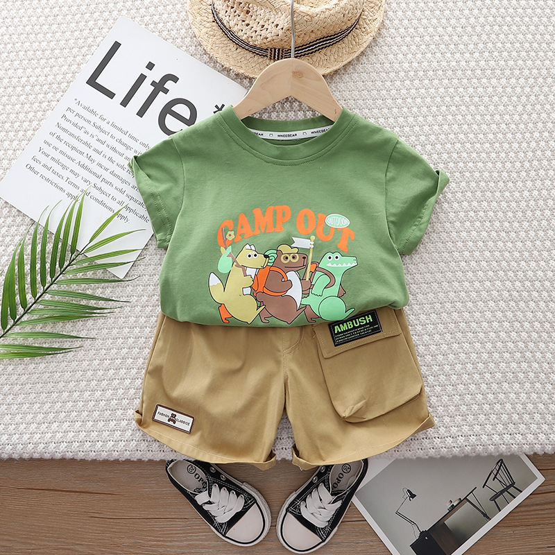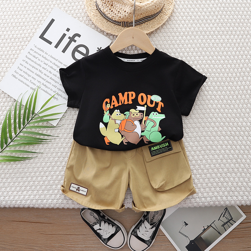 | nameOriginal | Boys' Summer Fashion Fashionable T-shirt Five-point Pants suit 2024 Summer New Children's Short-sleeved Shirt Two-piece Set |