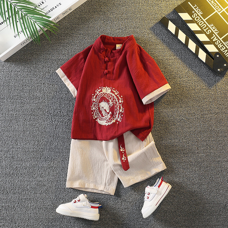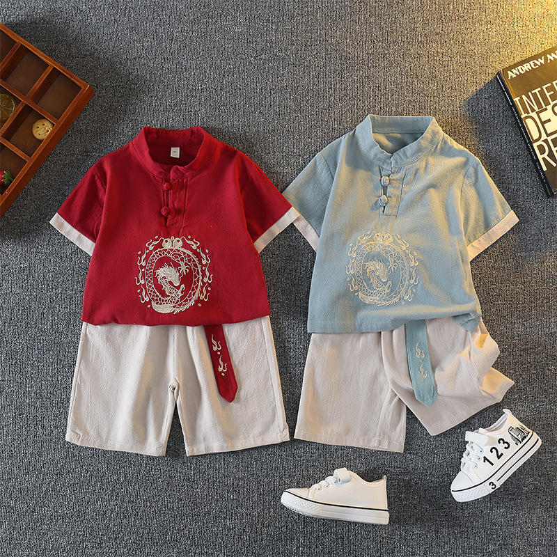 Boy's summer Hanfu short sleeve suit Chinese Tang suit Boy's retro cotton and linen Chinese style children's year-old gift