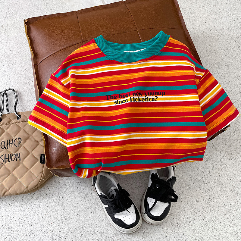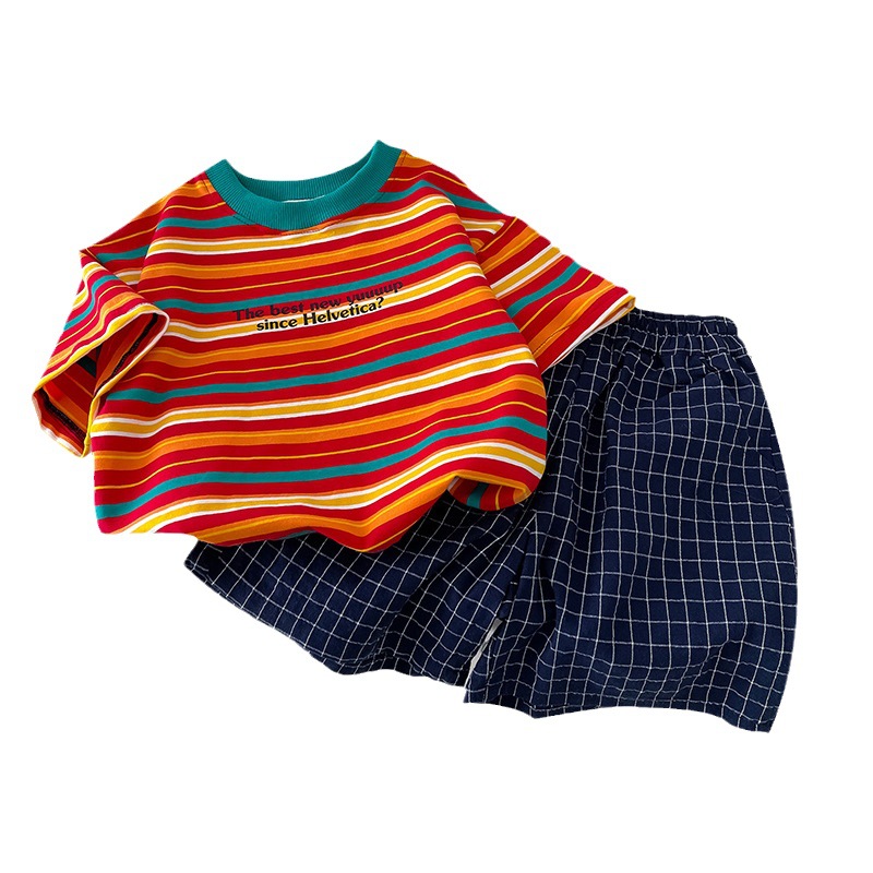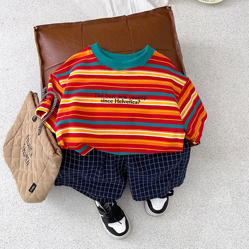 | nameOriginal | Boys' Summer Round Neck T-Shirt Short Sleeve Suit Children's 2024 Summer New Style Small and Medium-sized Children's Striped Boys' Trendy T-hair |