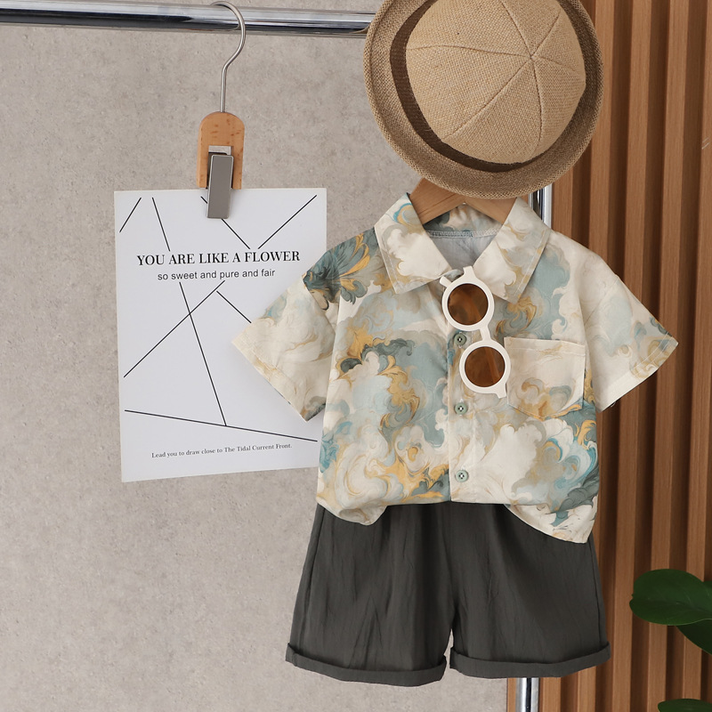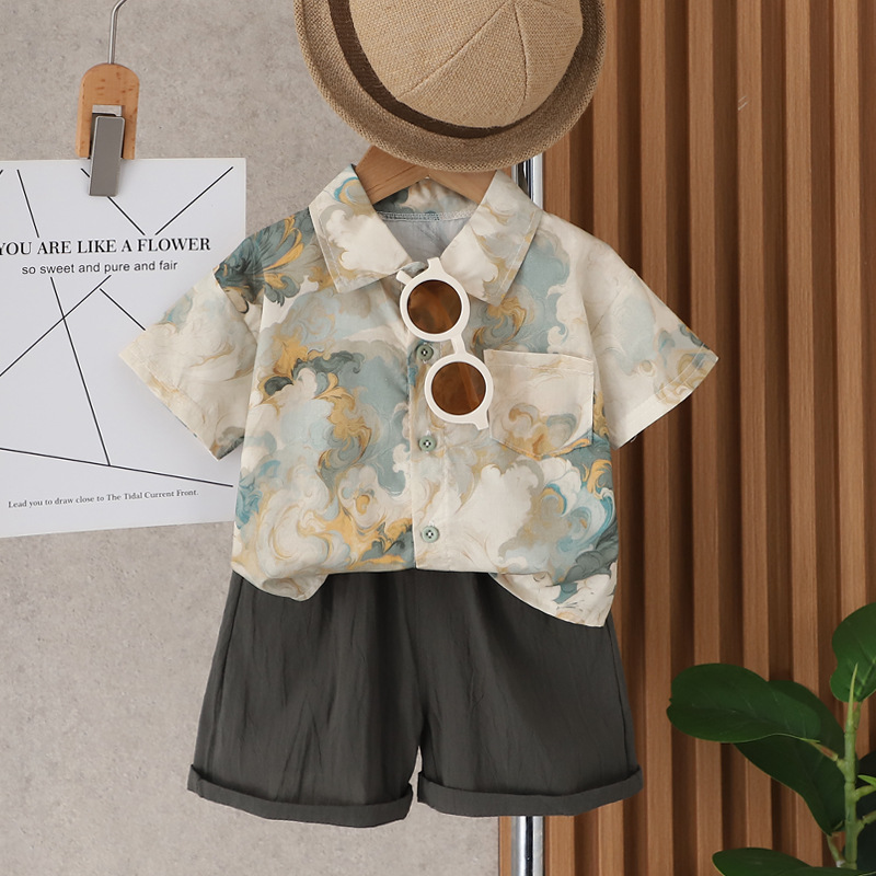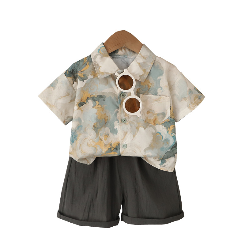 Boy's Summer Shirt suit Handsome Children's Clothes Baby's Summer 0 Short-sleeved Travel Out Guofeng Two-piece Set