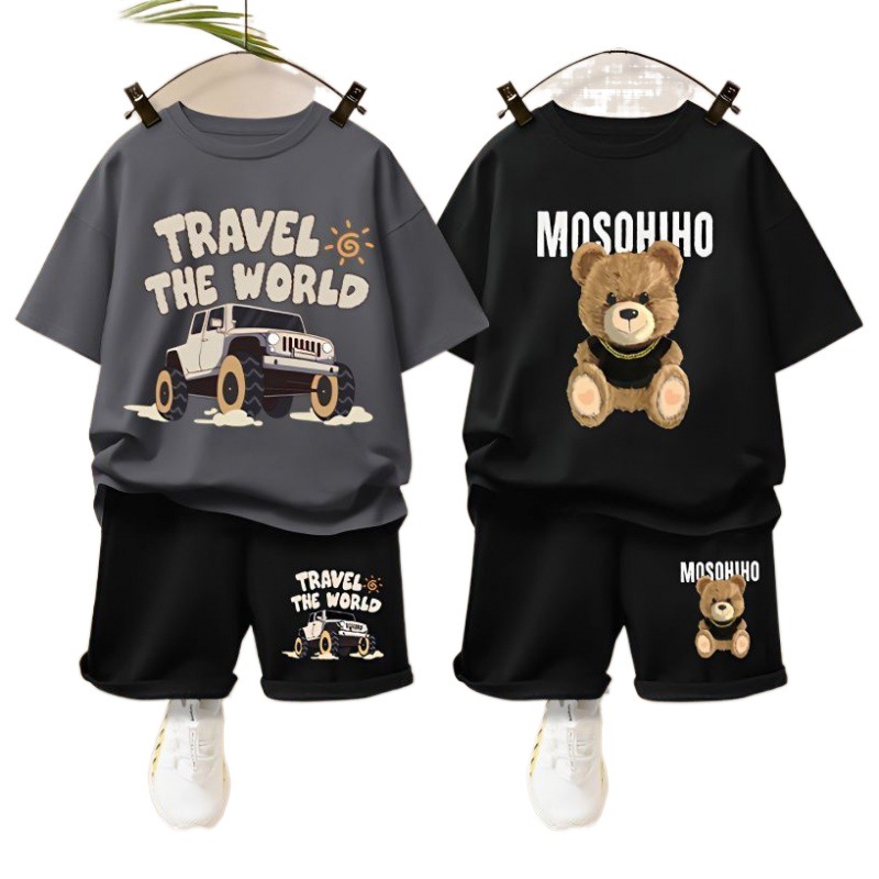 Boys’ Summer Short-sleeved suit 2023 New Style Frying Street Fashionable Summer Clothing Casual Anti-mosquito Pants Baby Girls’ Children’s Clothing Trendy