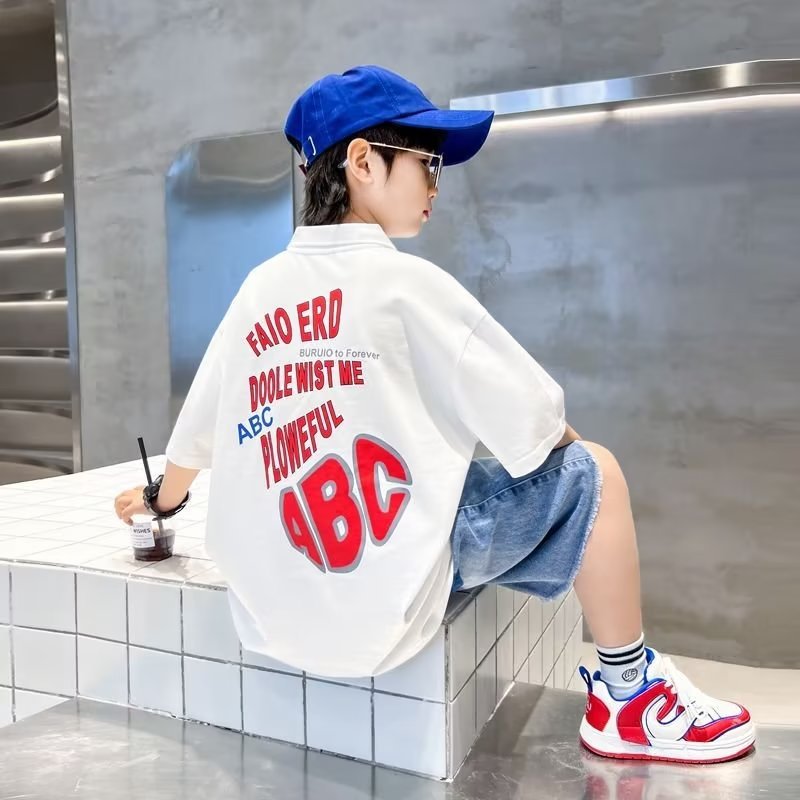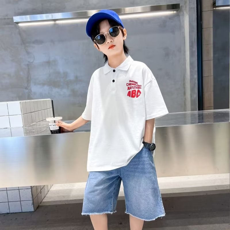 | nameOriginal | Boys Summer Short-sleeved T-shirt Polo Shirt 2024 New Big Kids Casual Children Summer White Half-sleeved Trendy T Top |