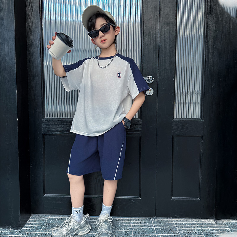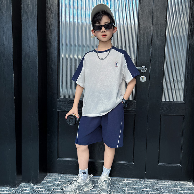 | nameOriginal | Boys' Summer suit 2024 New Children's Western-style Sports Leisure Letters Colorblock Short-sleeved T-shirt Two-piece Set 7 Trendy |