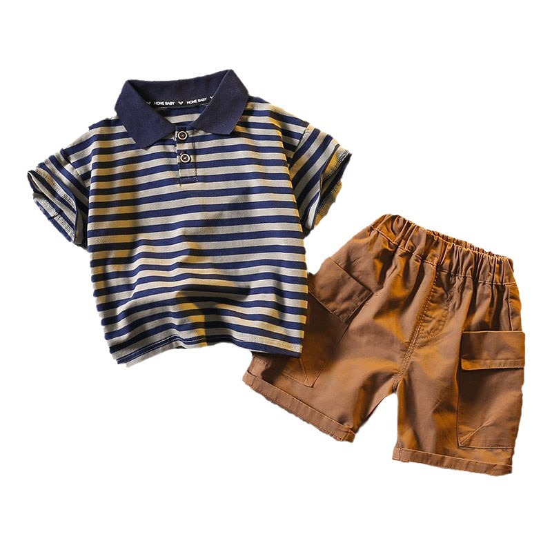 | nameOriginal | Boys' summer thin striped short-sleeved polo shirt suit baby new T-shirt + shorts two-piece children's clothing wholesale |
