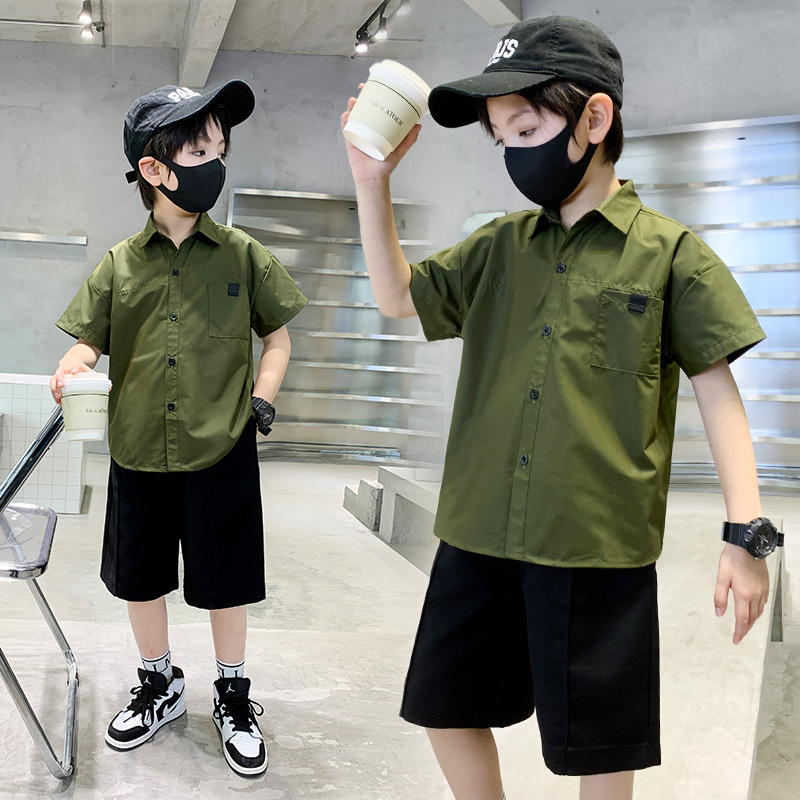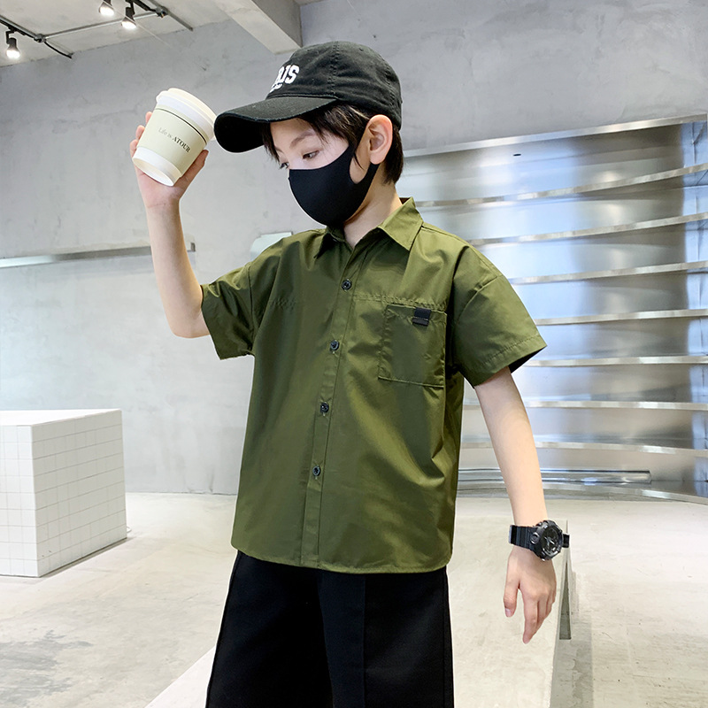 Boys' Summer Wear Big Children's Shirt 2024 New Western Style Big Children's Wear Handsome Fried Street Short-sleeved Shirt Loose Trendy