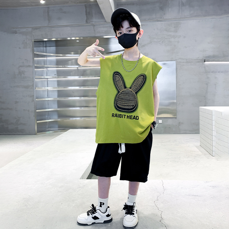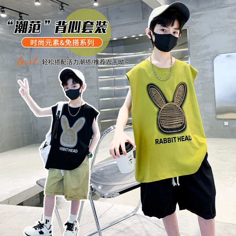 | nameOriginal | Boys' Summer Wear suit 2024 New Sleeveless Cartoon Rabbit Waistcoat Half-length Pants Two-piece Fashionable Set |