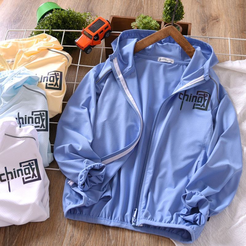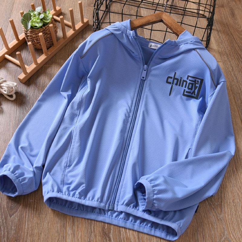 Boys' Sunscreen Clothing 2024 Summer Medium and Large Children's Lightweight National Style Coat Hooded Ice Silk Quick-drying Children's Sunscreen Clothing Trendy