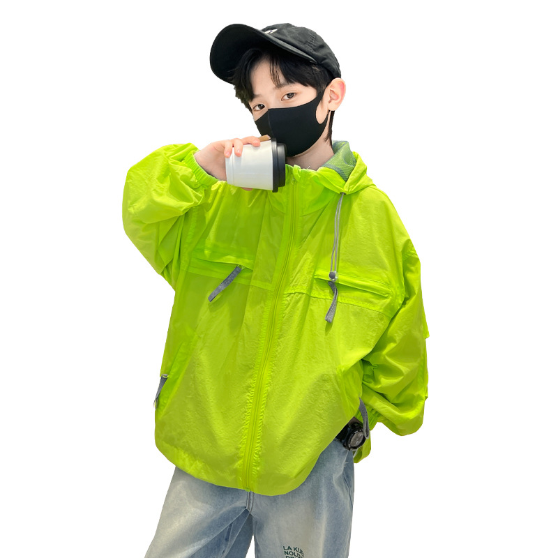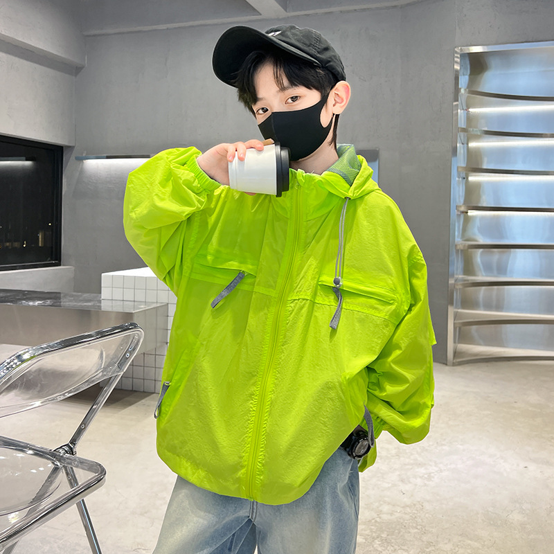 Boys' Sunscreen Coat 2024 New Children's Sunscreen Suit Boys' Summer Thin Hooded Top Cool-proof Suit