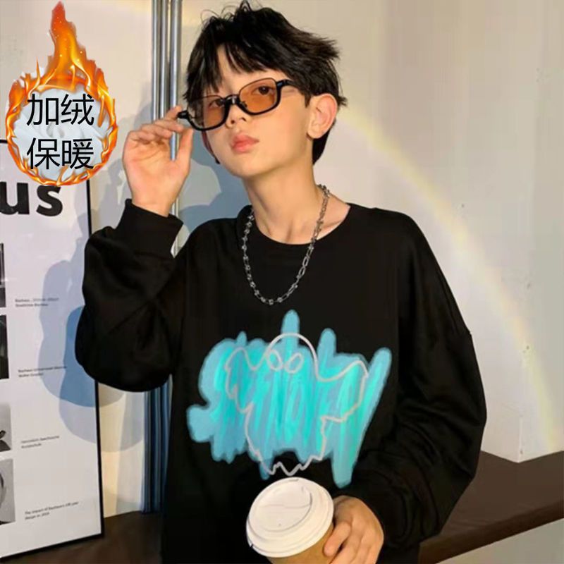 | nameOriginal | Boys' sweater 2024 new autumn and winter fleece-lined top hip hop handsome trendy handsome bottoming shirt children's long sleeve |
