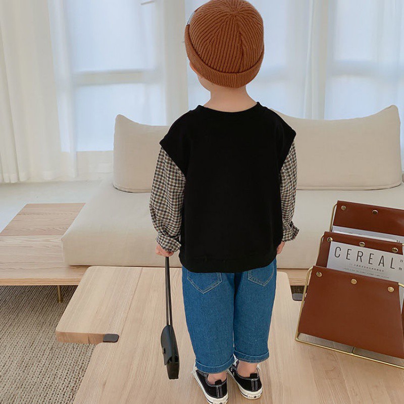 | nameOriginal | Boys' Sweater Baby's Spring and Autumn 2024 Korean Style Fake Two-Piece Stylish Plaid Top Children's Fashionable Base Shirt |