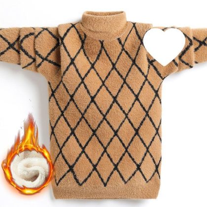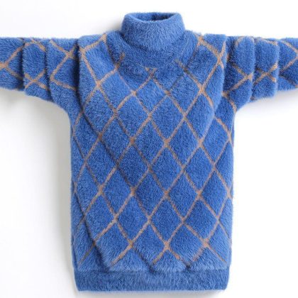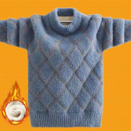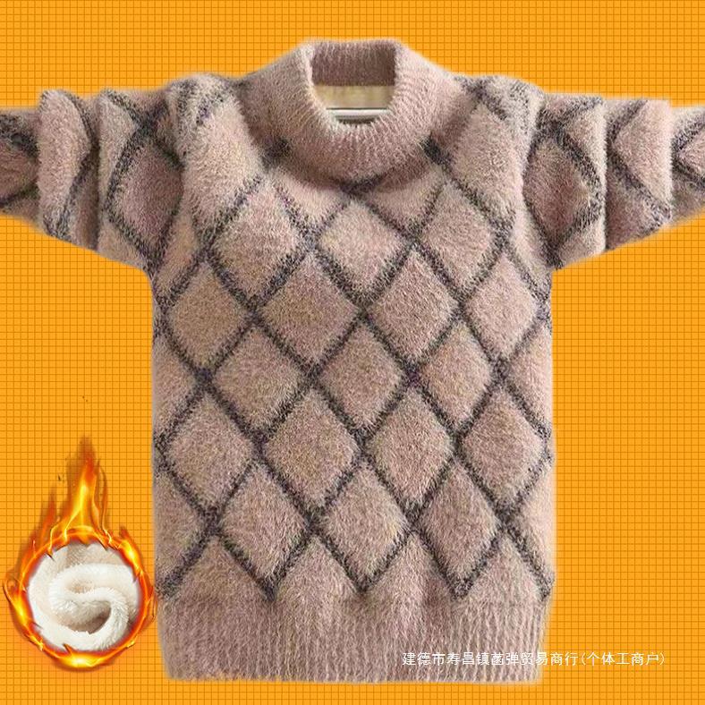 Boys’ sweater fleece-lined children’s mink velvet sweater 2023 new large children’s winter pullover thick boys sweater